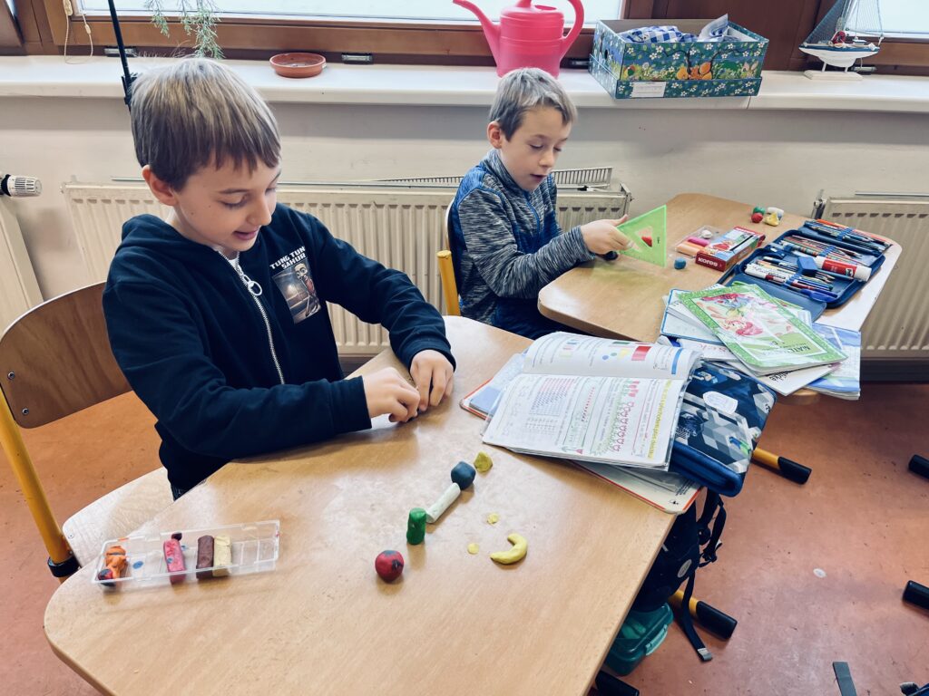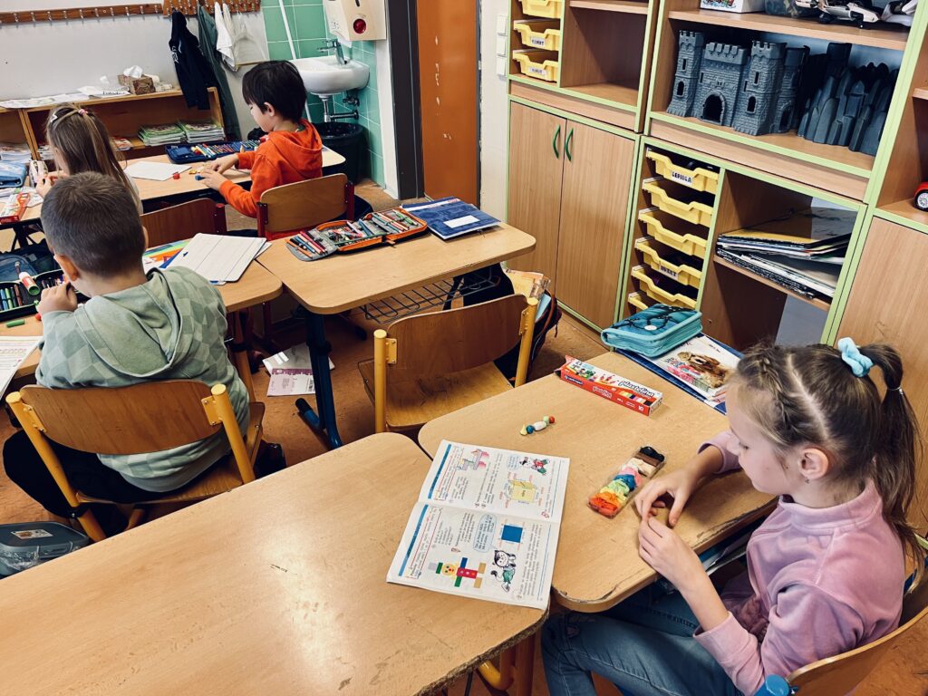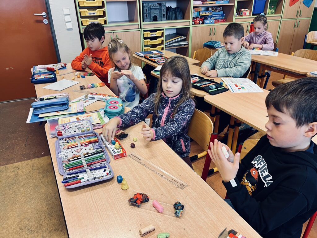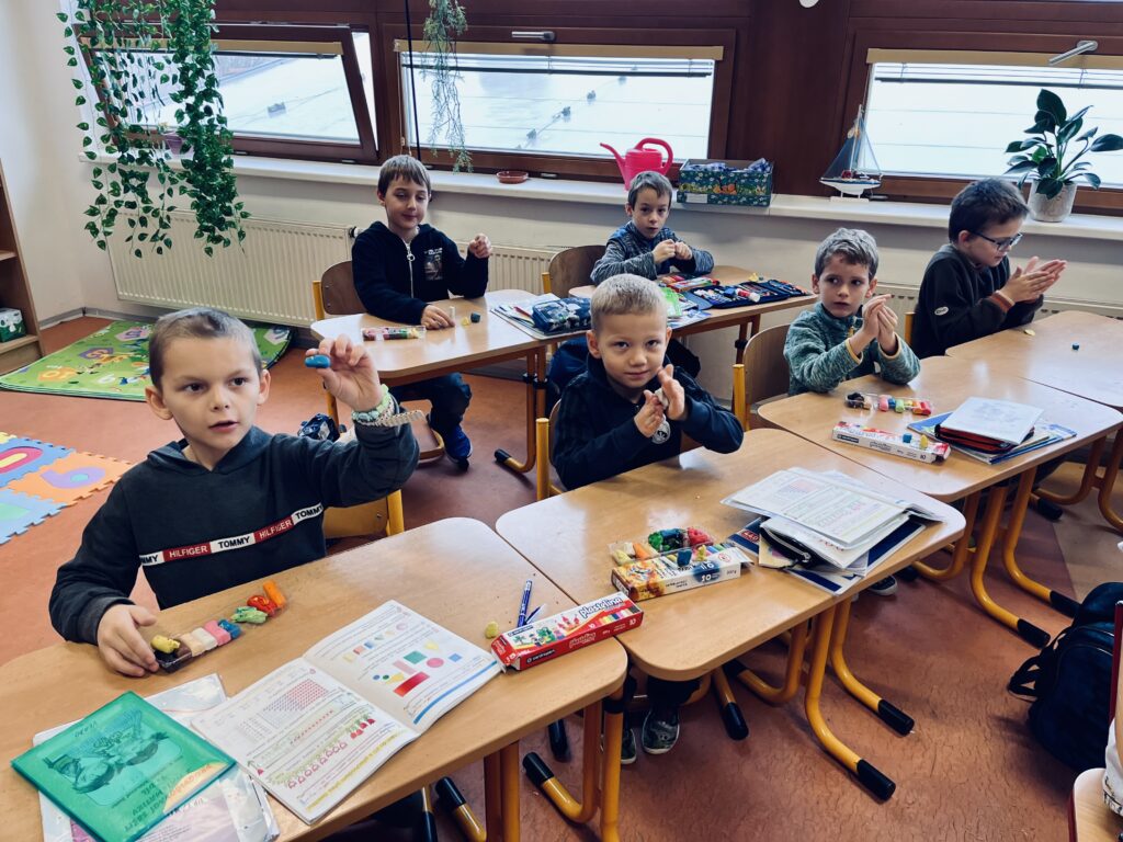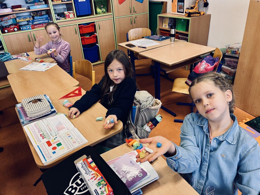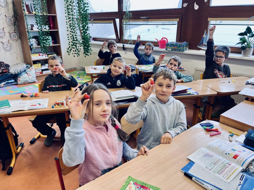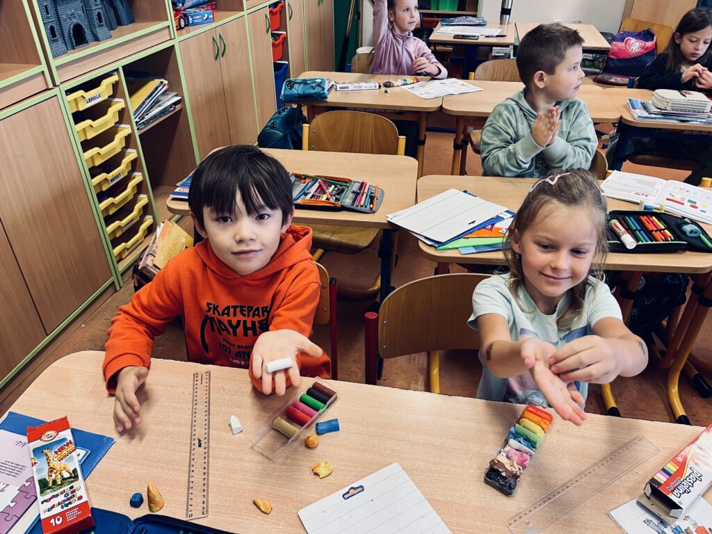 Dnešní vyučování ve 2. třídě bylo plné tvořivosti a radosti z objevování. Žáci se seznámili s geometrickými tělesy – krychlí, kvádrem, jehlanem, kuželem, válcem i koulí. Pomocí plastelíny si je sami modelovali. Aktivita podpořila prostorovou představivost, jemnou motoriku i schopnost přesného pozorování.