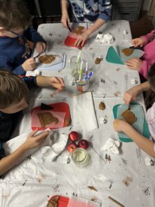 Největší radost přišla na závěr, každý si podle staré metody vytvořil svůj vlastní perník. Děti si vyzkoušely práci s tradičními formami, těstem i zdobením. Výsledkem byly nádherné voňavé kousky, které si odnesly domů jako sladkou památku na tento den. 🍪