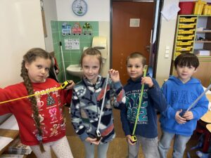 Ve třídě 2.A se v posledních dnech měřilo, porovnávalo a objevovalo. V rámci matematiky jsme se věnovali tématu jednotek délky a zkoumali, jak měření funguje nejen v učebnici, ale hlavně v praxi. Děti pracovaly s centimetry a metry, měřily lavice, sešity i spolužáky 📐🙂 a učily se odhadovat délku různých předmětů. Velkým zpestřením bylo také seznámení se starými mírami, vyzkoušeli jsme si měření na lokty, stopy i píď a společně přemýšleli, jak lidé měřili dříve.⏳ Učení probíhalo hravou a aktivní formou, děti spolupracovaly, diskutovaly a s chutí se zapojovaly do všech činností .🤍 Bylo vidět, že je téma baví a že si nové poznatky dokážou propojit s každodenním životem.