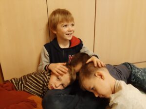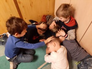 Takto to u nás vypadá, když děti vyzvu, aby si našly pohodlné místo, protože se chystám vyprávět pohádku :-).