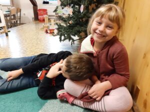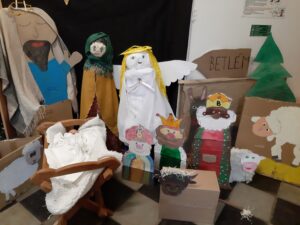 S dětmi z vyšších tříd jsme vyráběli společný Betlém. Naše třída měla „na starosti“ Marii.