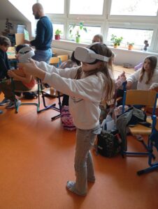 S lektory z ze společnosti Caliditas jsme se ve středu zabývali virtuální realitou. Lektoři si s dětmi povídali, co virtuální realita je, jak a k čemu se dá využívat a jak a kde s ní mohou přijít do kontaktu děti i jak by se dala využít při učení.