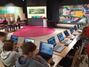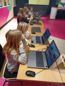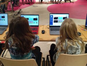 V první části s dětmi pracoval lektor z Logiscool. Povídali jsme si, jak se tvoří počítačové programy. Děti si vyzkoušely, jak se programují počítačové hry.