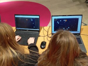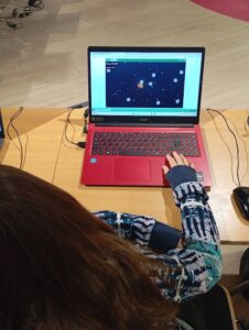 Každý měl k dispozici notebook, na kterém sám podle instrukcí lektora zkoušel vytvářet nové prvky v prostředí hry Válka asteroidů. Děti programovaly pomocí bloků. Programovaly létání a otáčení rakety, střelu, ovládání.