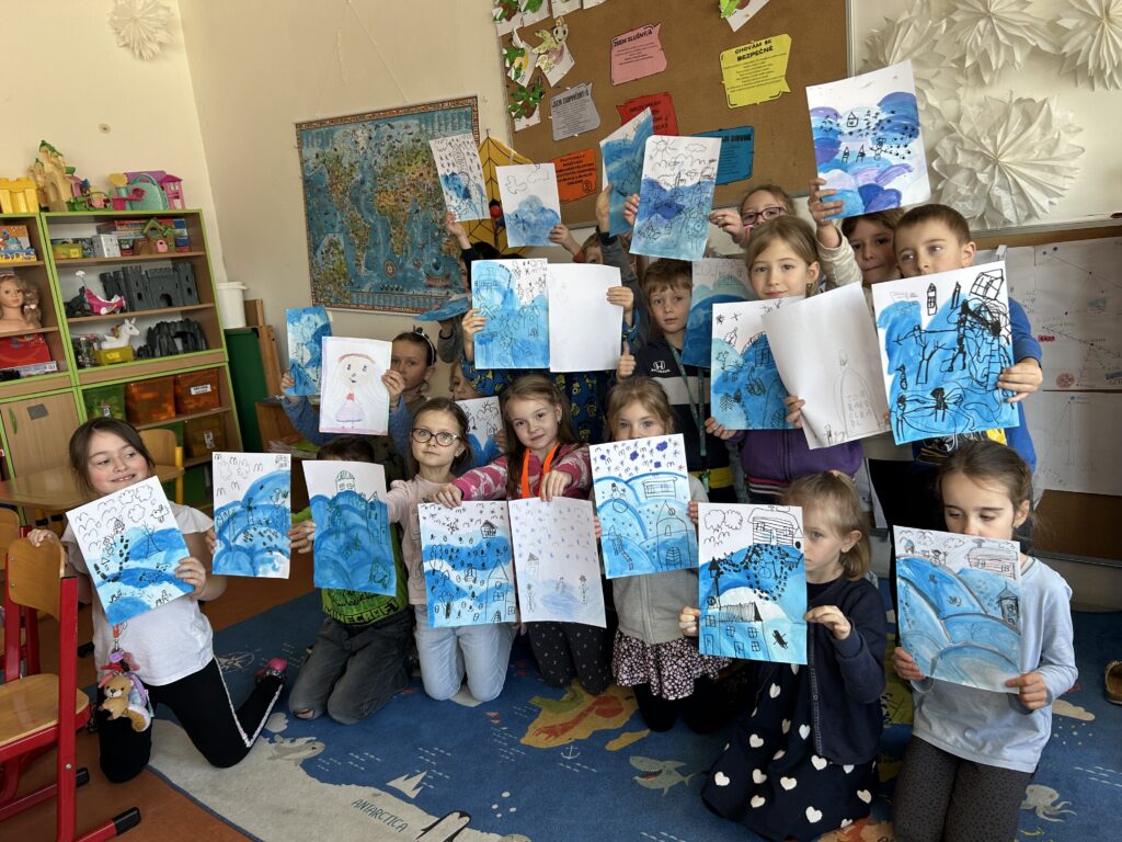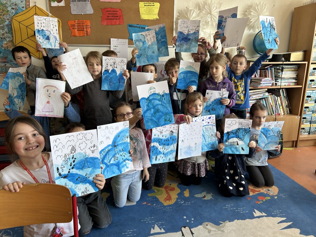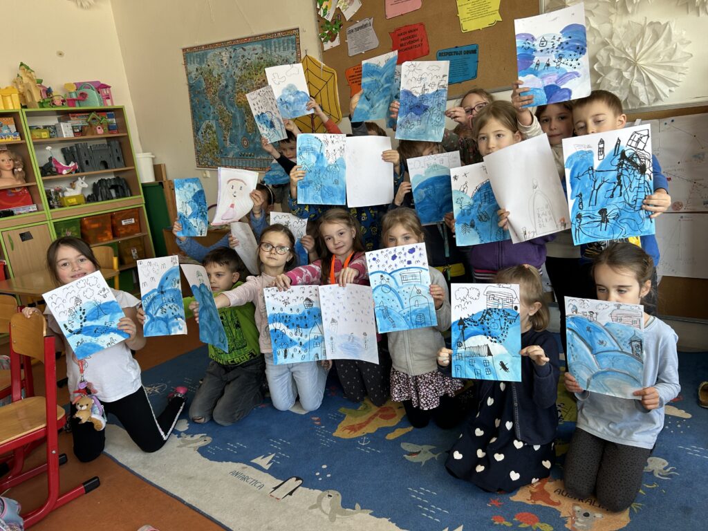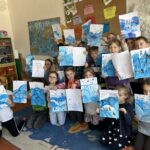 V pondělí 4. března panovalo sice jarní počasí, ale my jsme se při tvoření rozloučili se zimou malováním zasněžené krajiny.