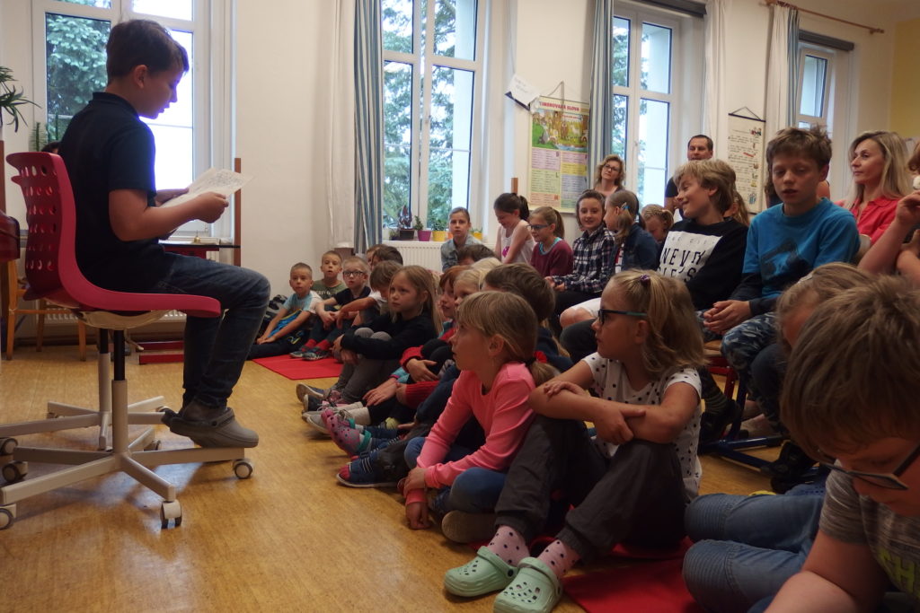 Autorské čtení Ve středu 29. května nám pozvali čtvrťáci na AUTORSKÉ ČTENÍ. Četli příběhy, které vymysleli. Čtení se nám moc líbilo.