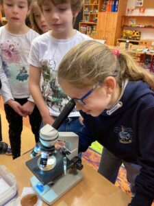 BAKTERIE V úterý přišel do naší třídy sedmák Oliver ukázat, jak vypadají bakterie z banánu, z nosu a ze zubů zblízka pod mikroskopem.
