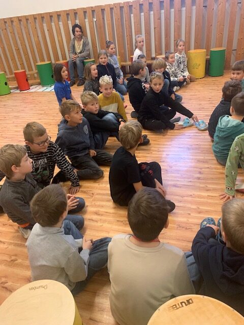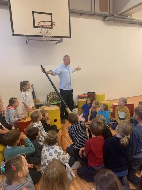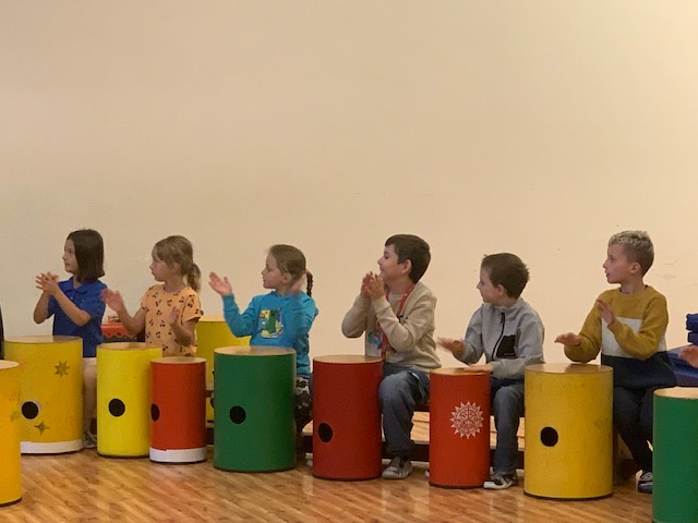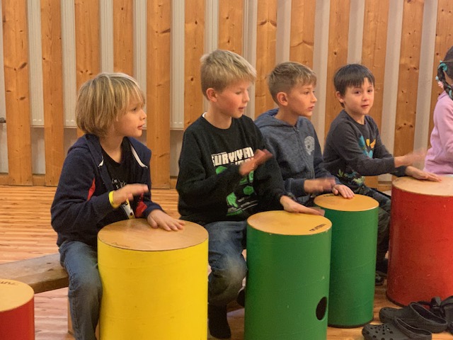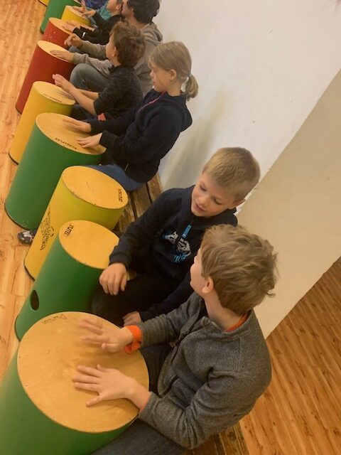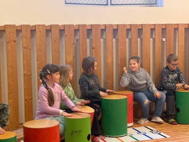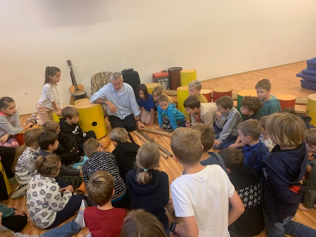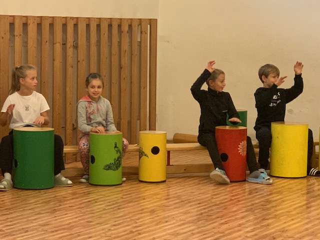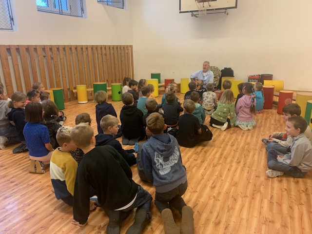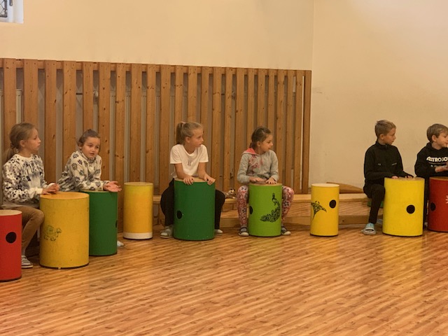 Středa byla výjimečná – užili jsme si bubnování v malé tělocvičně. Všichni jsme si mohli zabubnovat, poznat netradiční hudební nástroje a pořádně se vyřádit. Atmosféra byla plná rytmu, radosti a energie. Na závěr týdne jsme využili krásné počasí a vydali jsme se ven na hodinu etické výchovy a čtení.