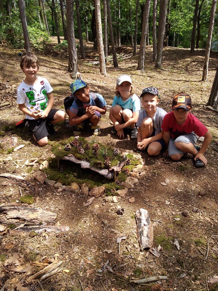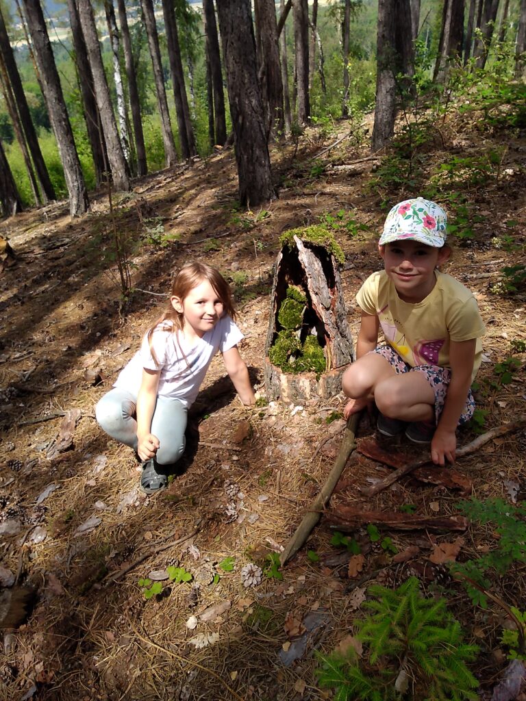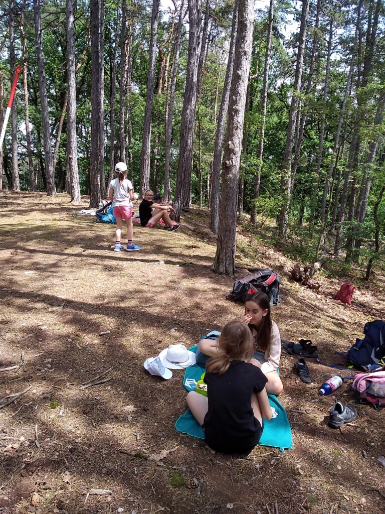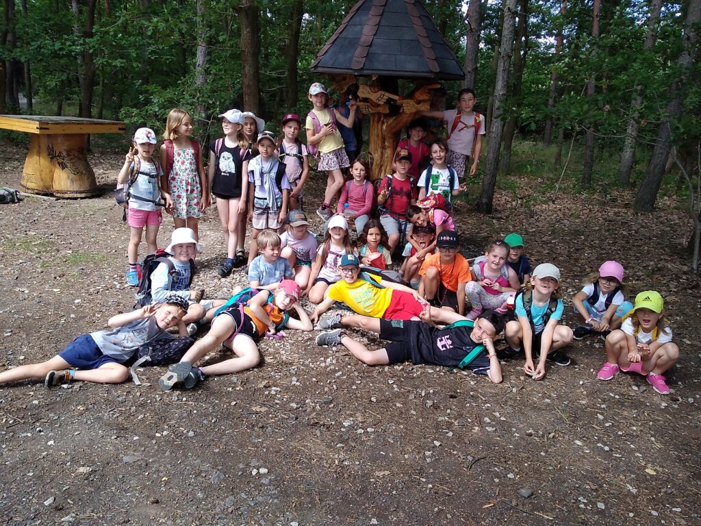 Ráno do Všenor jsme popojeli vlakem a dále pokračovali po zelené turistické cestě směrem na Jíloviště. Cestou jsme našli krásné dřevěné posezení ke svačině s houpačkou. V Jílovišti si děti mohly něco zakoupit v cukrárně Stáňa. Pokračovali jsme k vysílači Cukrák a nedaleko jsme obědvali, stavěli domečky a z kopce Kopanina děti viděly mokropeskou školu, Prahu, Radotín atd.