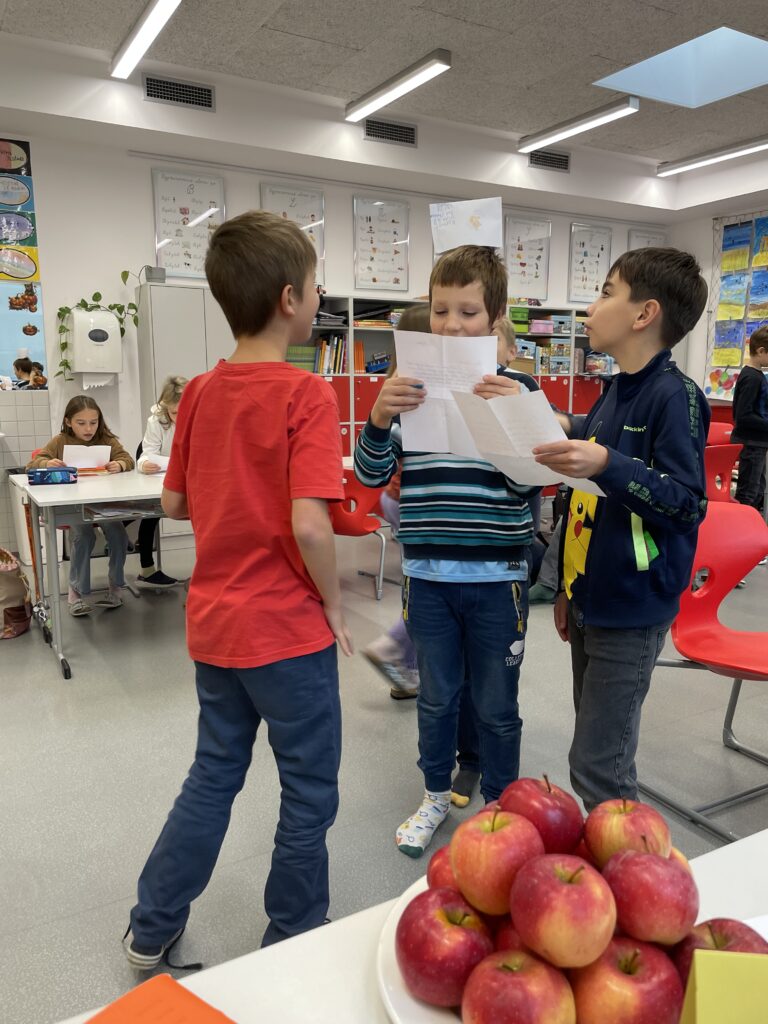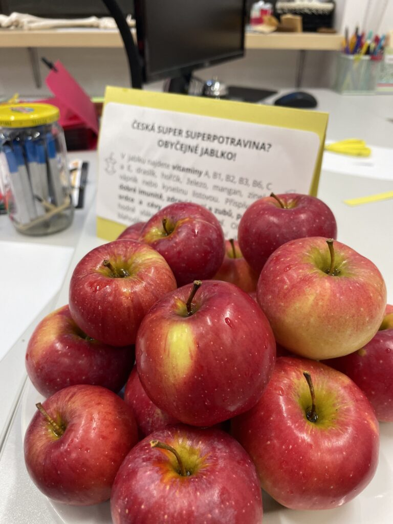 V pátek jsme posvačili zdravě, k dispozici byla jablíčka od paní učitelky ze zahrádky. Jako superpotravina se za 4. D odhlasovalo MANGO. Kdo chtěl, přišel v kostýmu. A protože mezi nás tento týden chodili i rodiče, někteří se také do akce zapojili a přišli v doplňcích. Rodičům patří dík za pomoc s průběhem center aktivit.