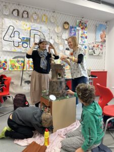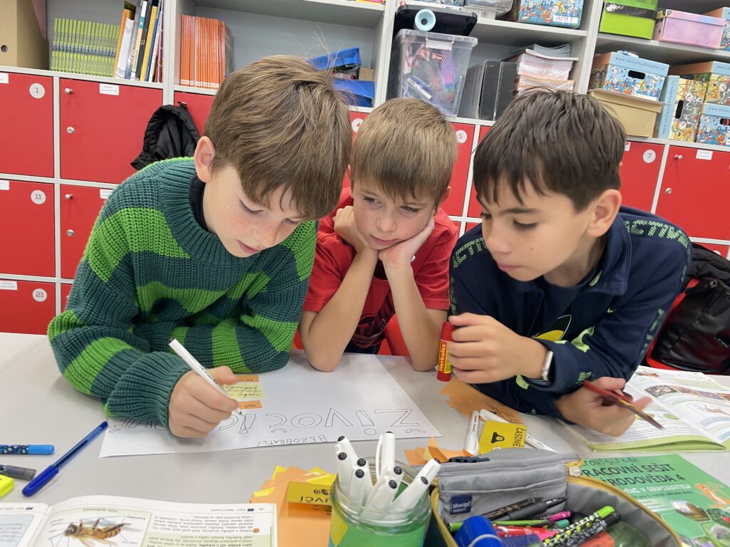 V centrech aktivit jsme tentokrát bádali v oblasti přírodovědy. V matematice jsme počítali slovní úlohy o zvířatech a poté jsme si zopakovali souřadnice (čtvercová síť, šachovnice). Rekord padl v úterý, kdy tým matematických borců vypočítal v limitu 30 minut 45 slovních úloh. V centru čtení jsme studovali 10 zvířat – přečetli jsme si o nich texty, zvýraznili jsme si důležité informace a poté jsme odpovídali na otevřené otázky a na otázky typu pravda/lež. Zvířata jsme si pak vzájemně představili. V centru vědy a objevů jsme si vyrobili Lapbook – schéma rozdělení živých organizmů a nastudovali jsme jej. Pak si každý tým zasadil své microgreens, což nám krásně ladilo s týdnem zdravých svačin. Klíčky budou přes prázdniny odpočívat u paní učitelky a po prázdninách je ochutnáme a zasadíme si ještě další. V centru psaní každý tým vyrobil plakát, kde zpracoval informace k houbám, rostlinám nebo živočichům. Touto formou jsme si téma hezky zopakovali. V ateliéru děti za asistence paní Tesařové, které tímto moc děkuji, vytvořily jakýsi kmen stromu s různými dutinami, norami a vychytávkami – nejlépe si prohlédnout fotky. Centra jsme si moc hezky užili.