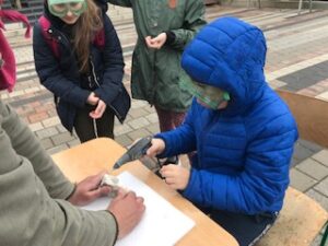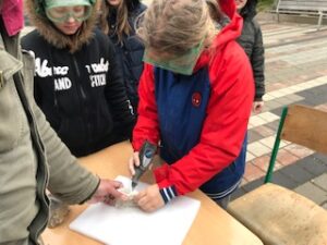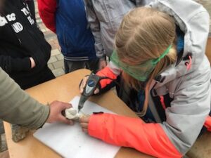 Na třetím stanovišti si žáci vyzkoušeli práci paleontologa v praxi.
