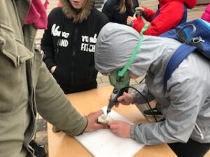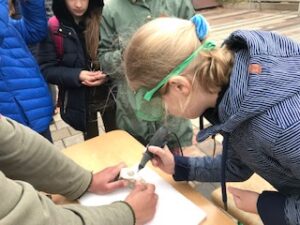 Na prvním stanovišti jsme odlévali odlitky vyhynulých živočichů.