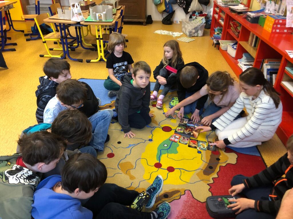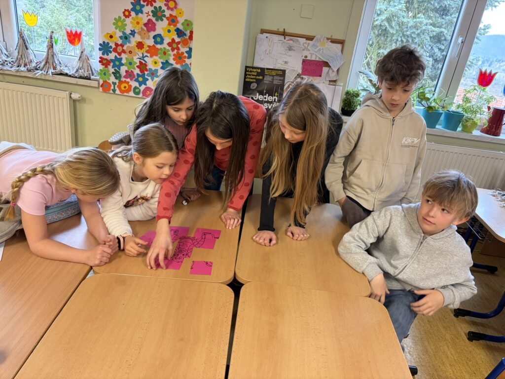Dopoledne s Andersenem probíhalo formou putování po celé škole. Ve smíšených skupinách jsme se postupně přesouvaly mezi jednotlivými třídami, kde na nás čekaly různé aktivity inspirované knihami. Seznámili jsme se s Pipi Dlouhou punčochou, Ronjou, Eragonem, Karlem IV. a Proměnou od Franze Kafky. Celé čtvrteční dopoledne bylo velmi pestré a moc se všem líbilo. 🙂