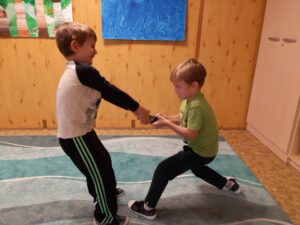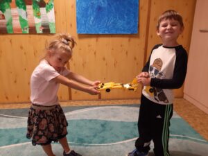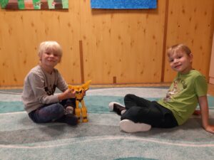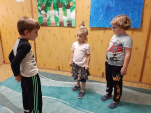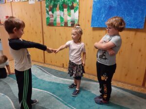 Tento týden jsme se zabývali tématem: „Všichni jsme tu kamarádi“. Povídali jsme si o kamarádství, toleranci a vzájemné ohleduplnosti. Pořídili jsme fotografie na plakát, který nám bude pomáhat řešit konflikty. Učili jsme se dělit o hračky, rozpočítávat se, losovat i střihnout si „kámen, nůžky, papír“. Dokončili jsme domeček pro laskavé skřítky, přidali „Ostrov kamarádských žížal“ na naši mapu putování a poskočili na třetí příčku Slovíčkové hry, která nám pomáhá k rozvoji slovní zásoby.