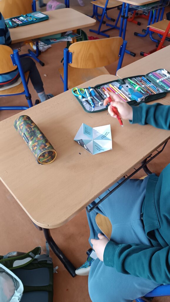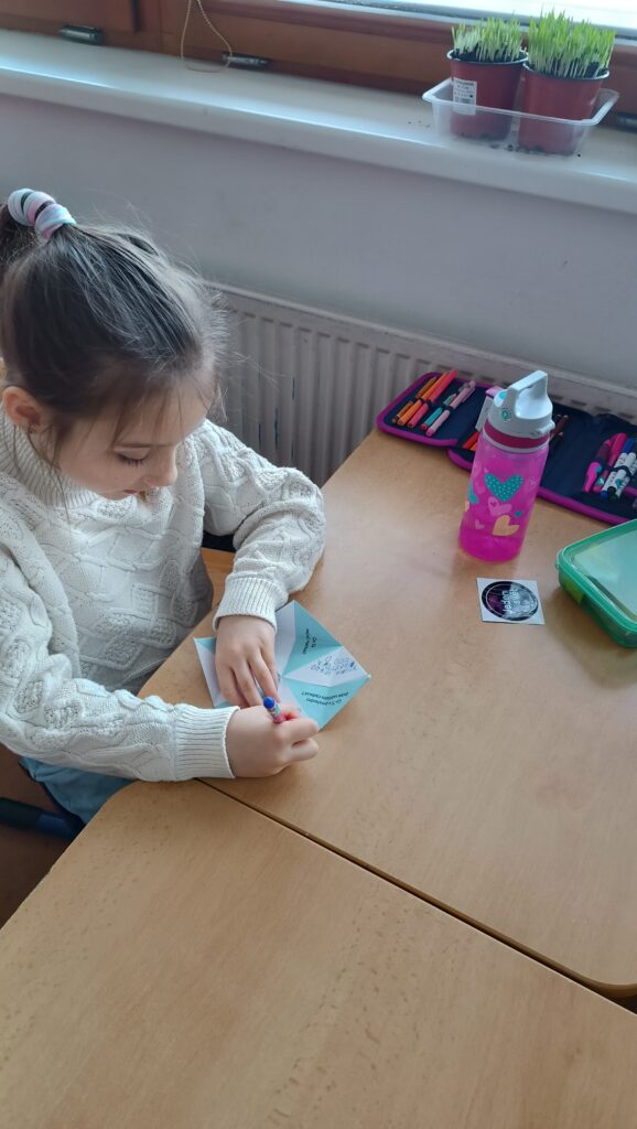 Po návratu z kina jsme si o filmech ještě společně povídali. Filmy v dětech vzbudily emoce i chuť sdílet vlastní názory. Také jsme využili materiály, které nám poskytl festival Jeden svět. Děti zaujala například nálepka i hra Nebe, peklo, ráj, díky kterým jsme mohli na témata z filmů dále navázat.