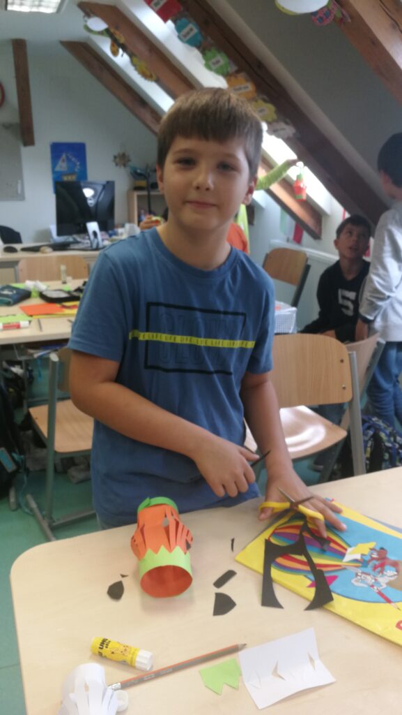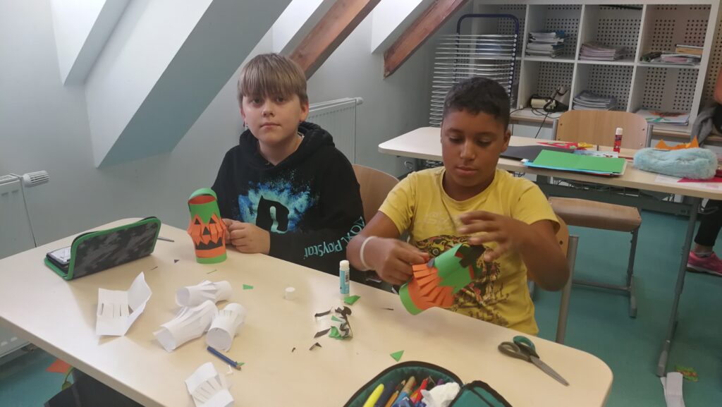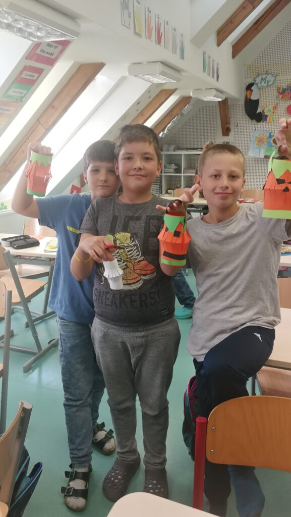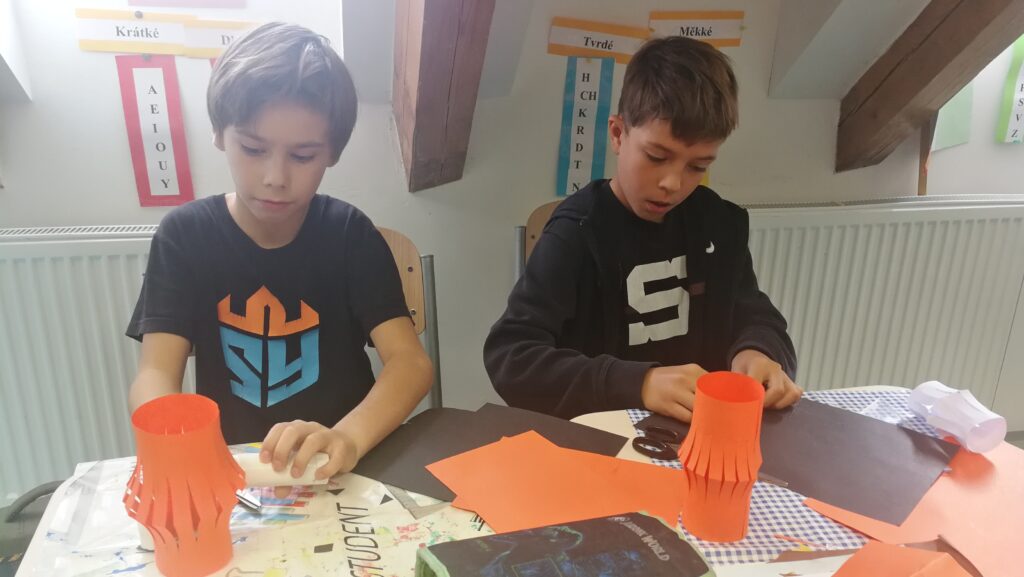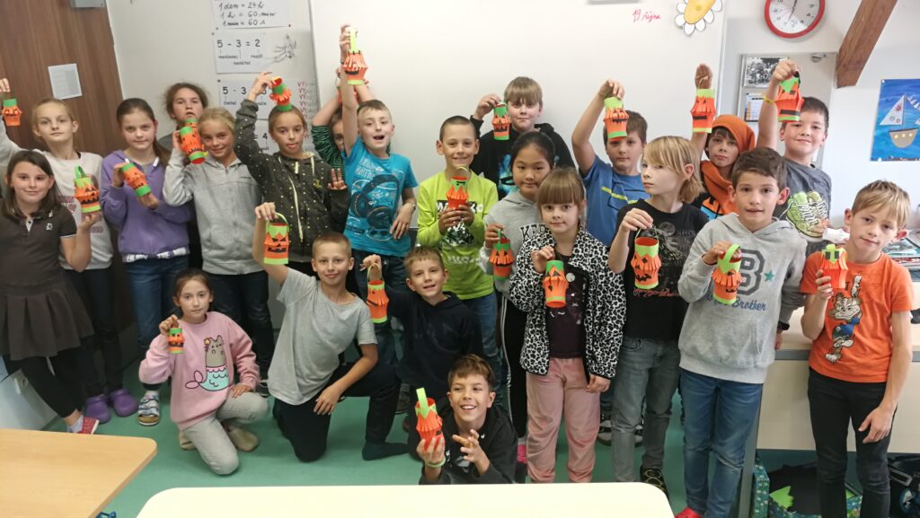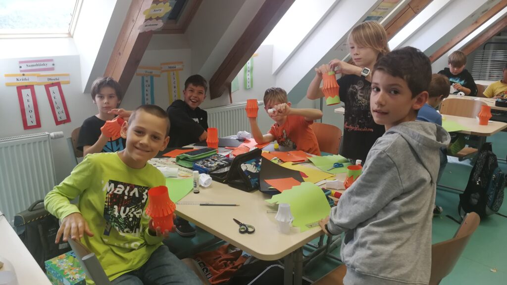 Děti si v rámci pracovních činností vyráběly krásné papírové lucerničky v podobě dýně. Během hodiny jsem si připomněli zvyky a tradice tohoto amerického svátku Halloween.