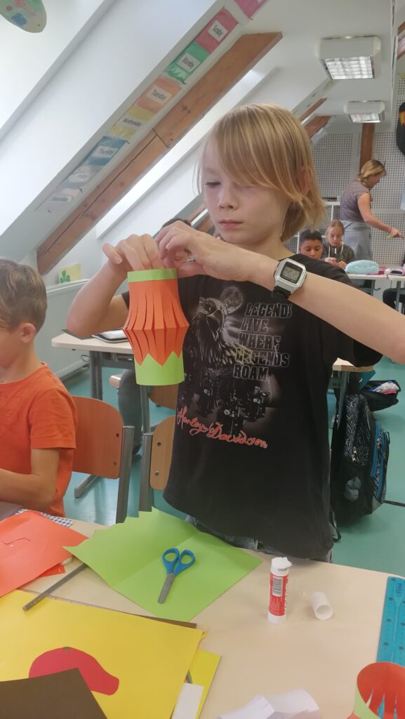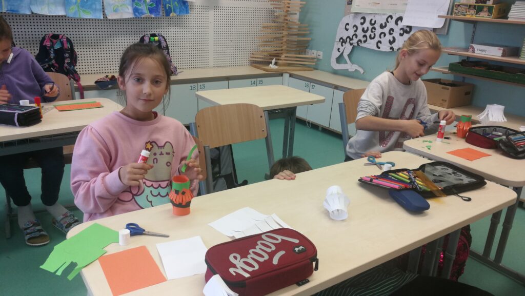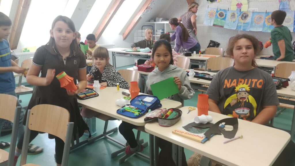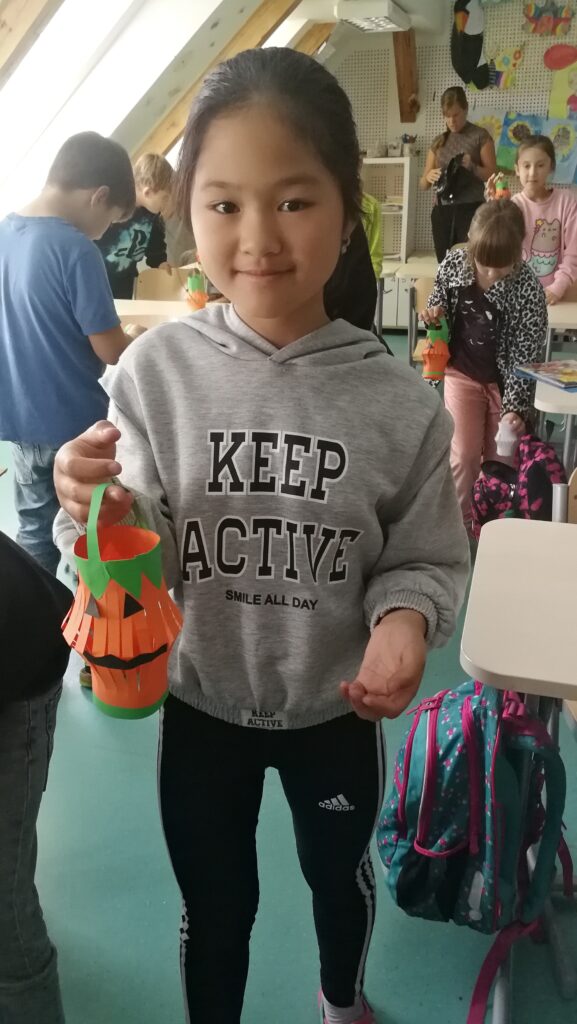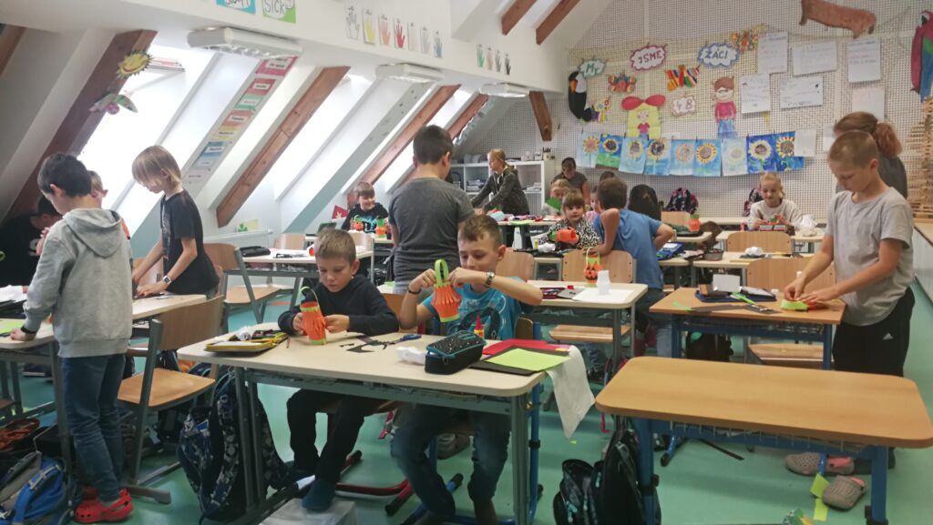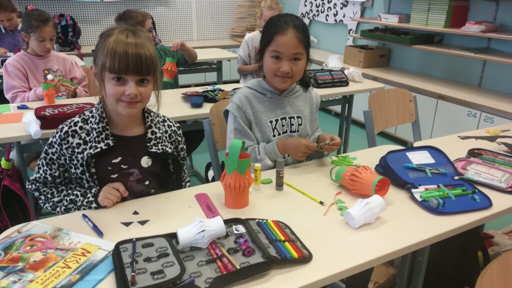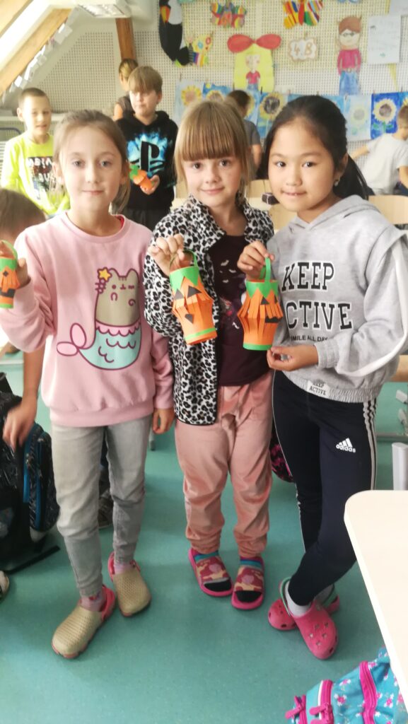Děti si v rámci pracovních činností vyráběly krásné papírové lucerničky v podobě dýně. Během hodiny jsem si připomněli zvyky a tradice tohoto amerického svátku Halloween.
