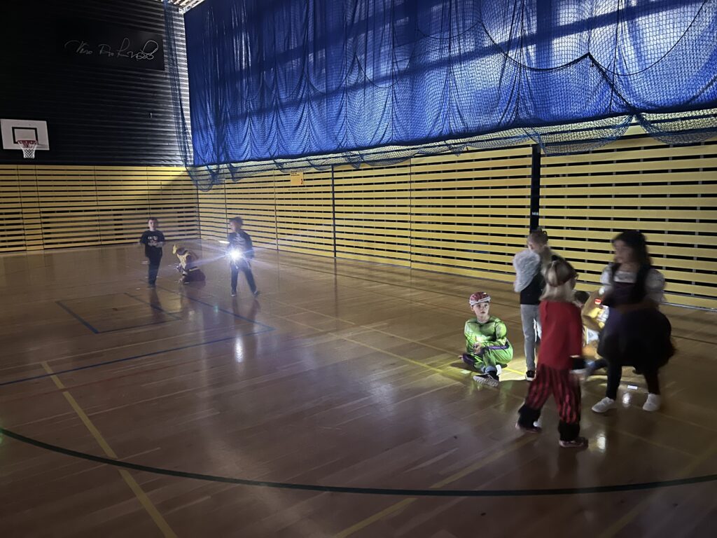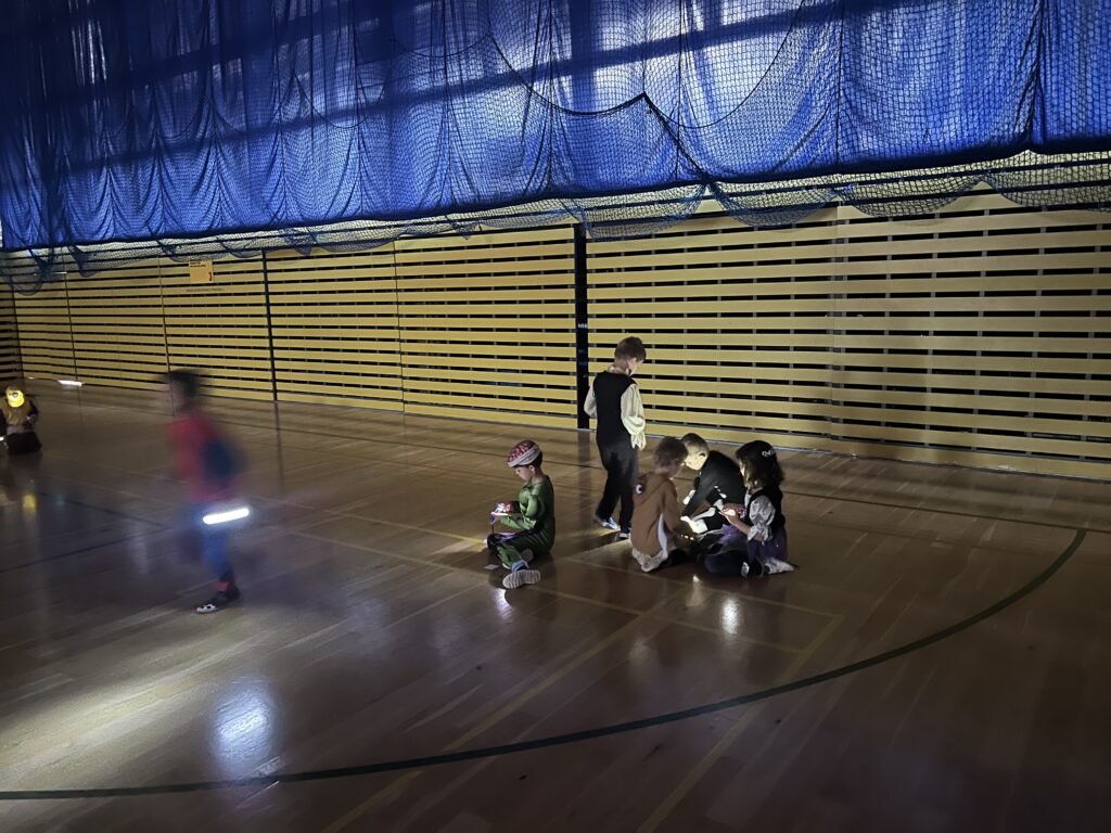 V tělocvičně jsme zhasli světla, vzali do ruky baterky a pustili se do hledání správných písmenek pomocí prosvěcování. Nebylo to vůbec jednoduché, ale děti si s úkolem poradily a užily si u toho spoustu legrace.