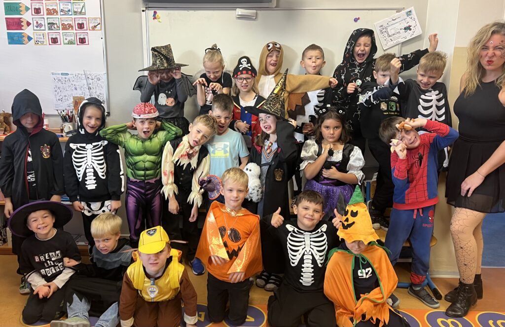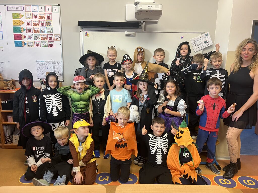 V pátek jsme si ve třídě užili předčasnou halloweenskou oslavu. Děti přišly v nejrůznějších kostýmech – nechyběli strašidla, kouzelníci, čarodějnice ani kostlivci. Všem to opravdu moc slušelo, a tak jsme si v kostýmech užili i tělocvik!