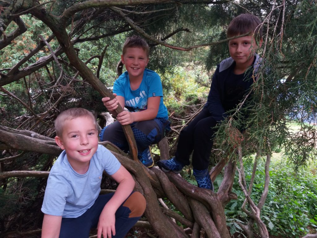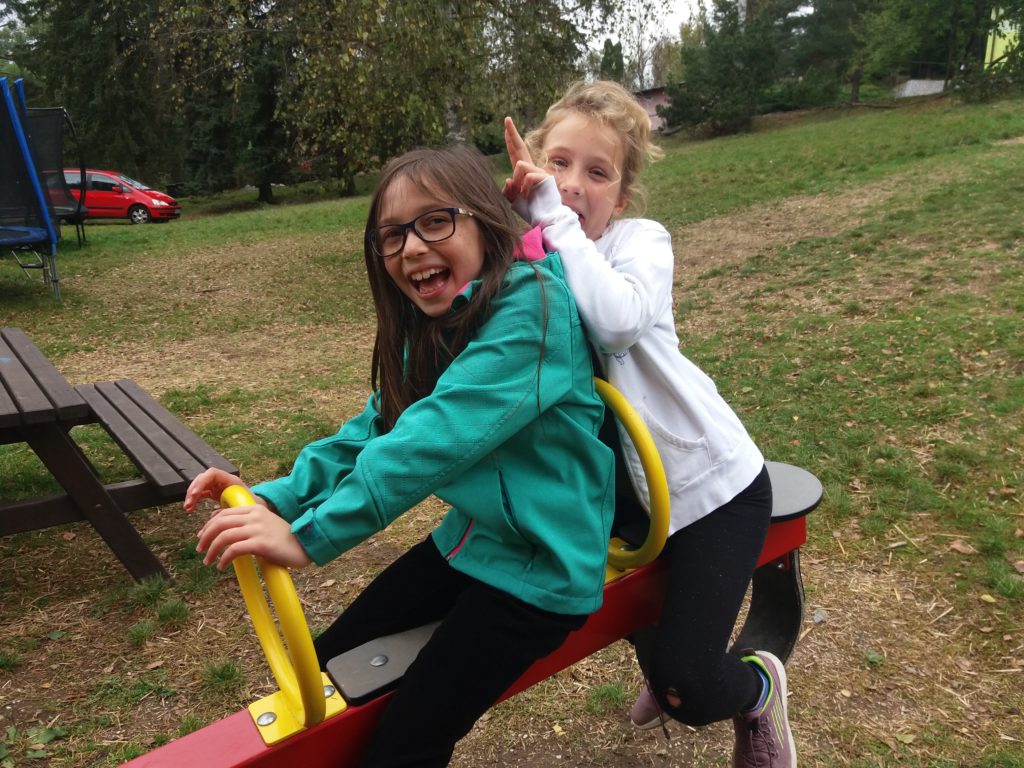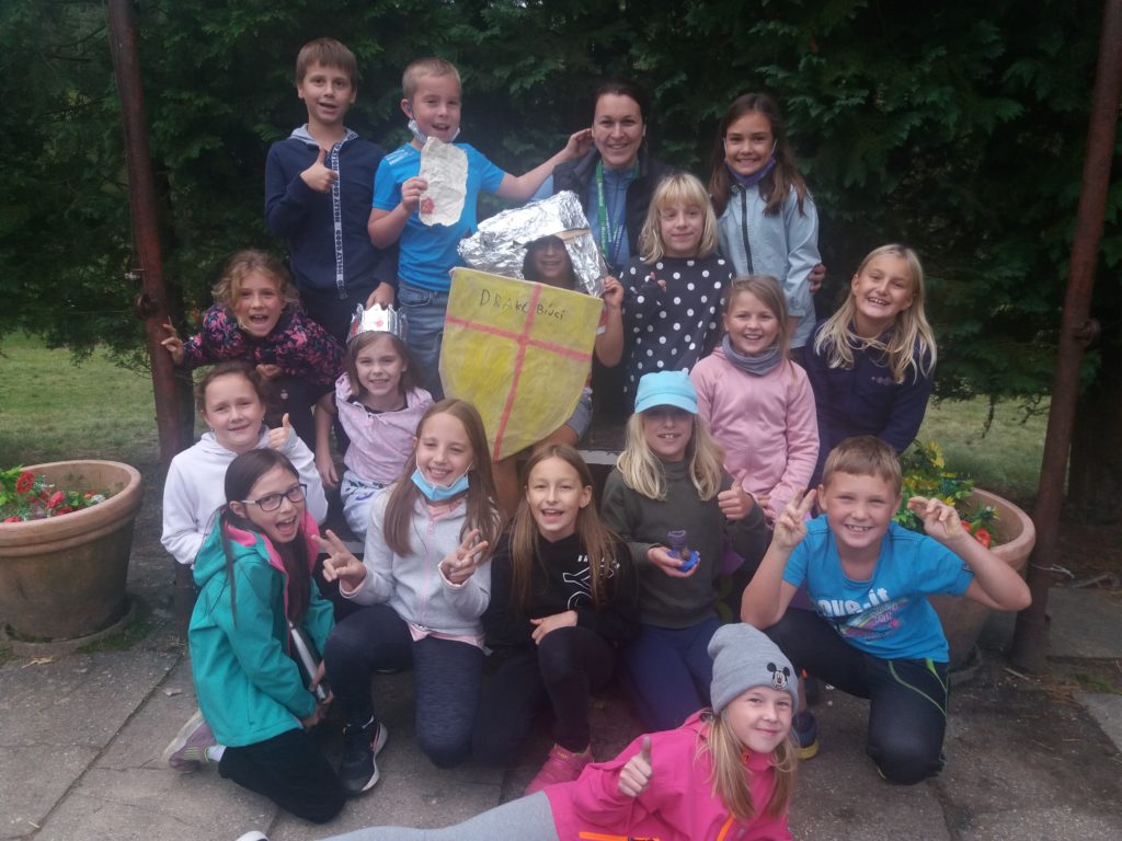Hrachov – 6. 10. Máme za sebou druhý den školy v přírodě, trochu učení a čtení, trochu hraní, zahájení celotáborové hry Putování za svatým grálem, spousta dobrého jídla. Jsme všichni v pořádku a je nám tady fajn.