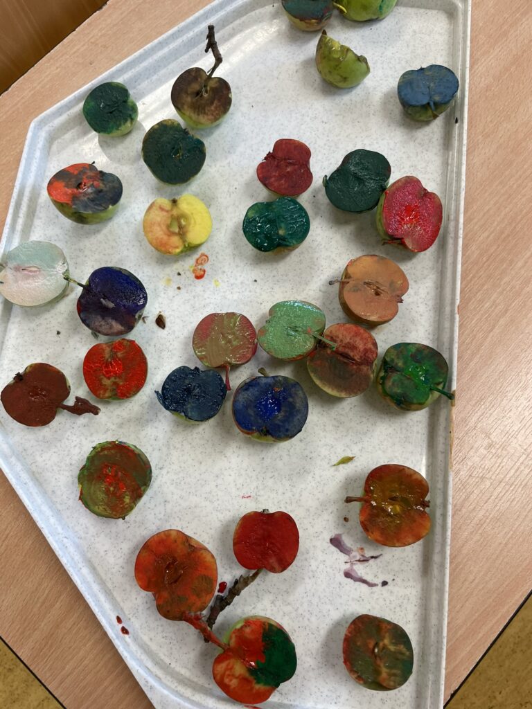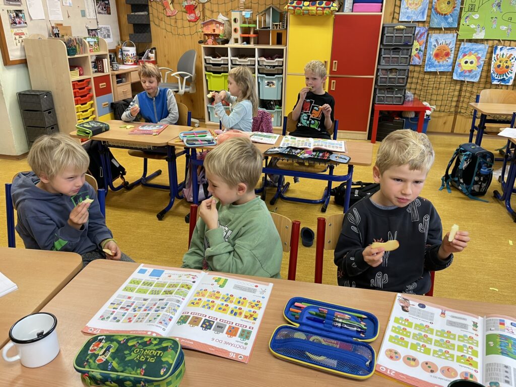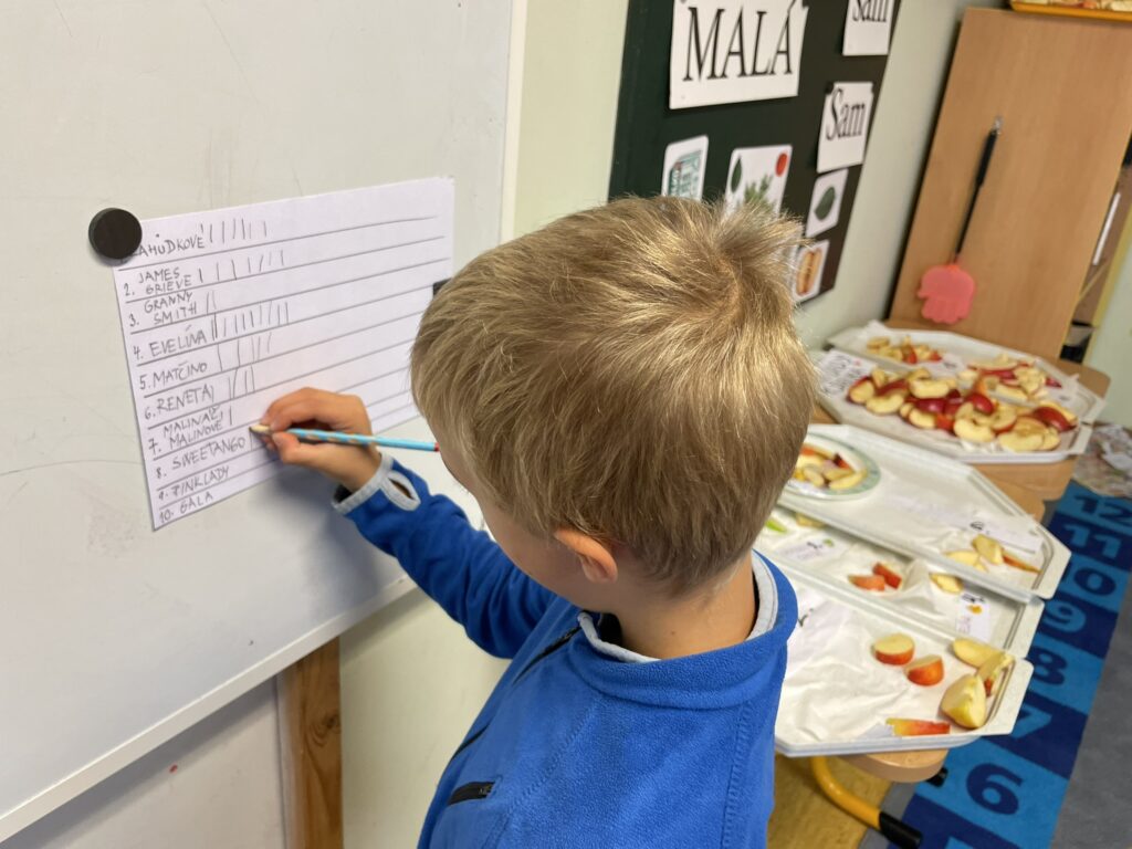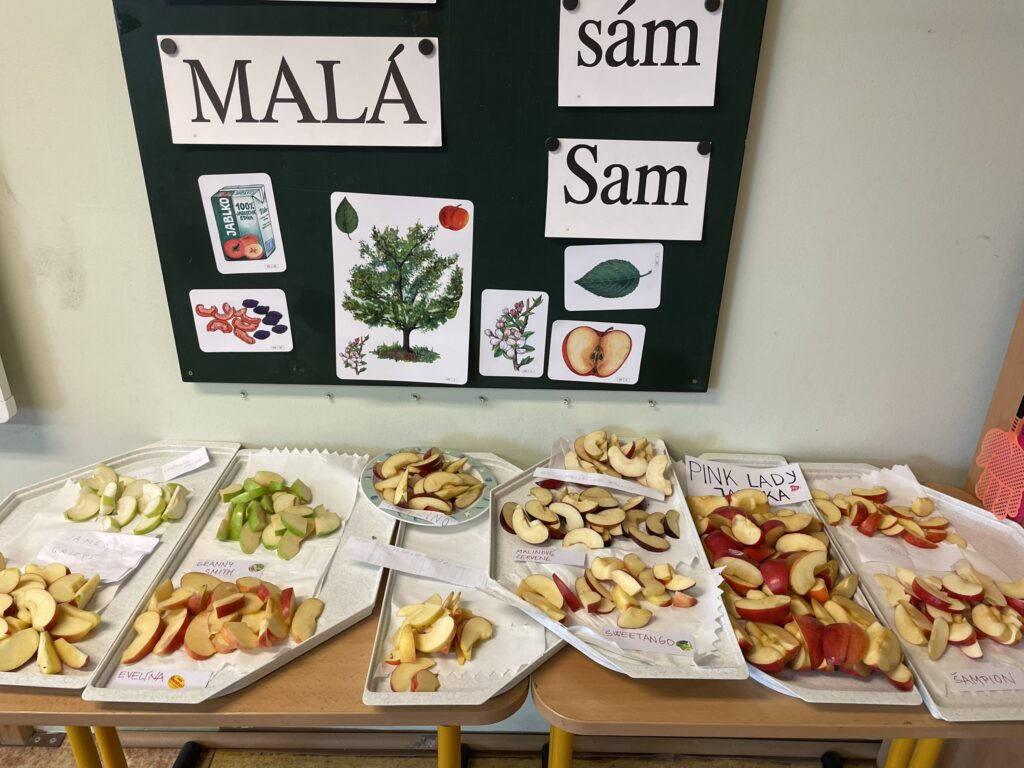 Ve středu v naší třídě zavoněla jablíčka. Společně jsme si uvařili jablkový kompot. Proběhla veliká ochutnávka a soutěž O jablko 1. C – vyhrála odrůda Šampion. Jablíčka jsme malovali, tiskali, stříhali. O jablíčkách jsme zpívali. Den jsme si moc užili 🙂 .
