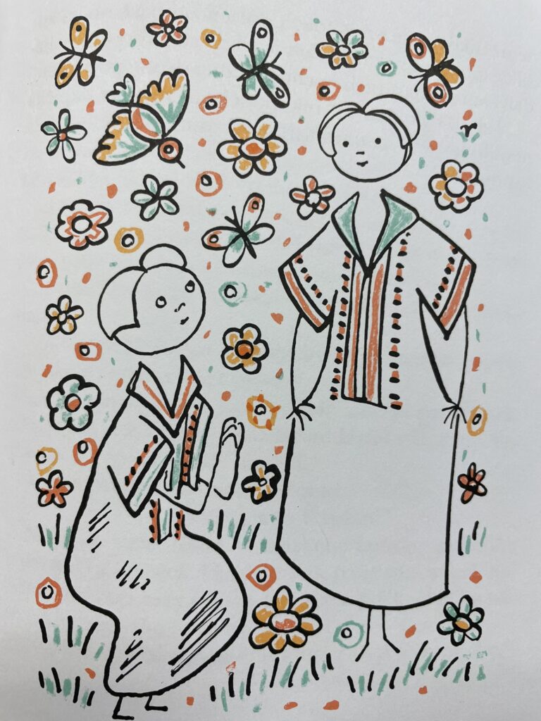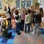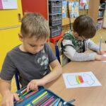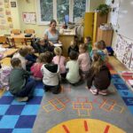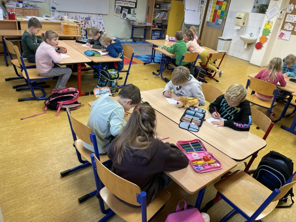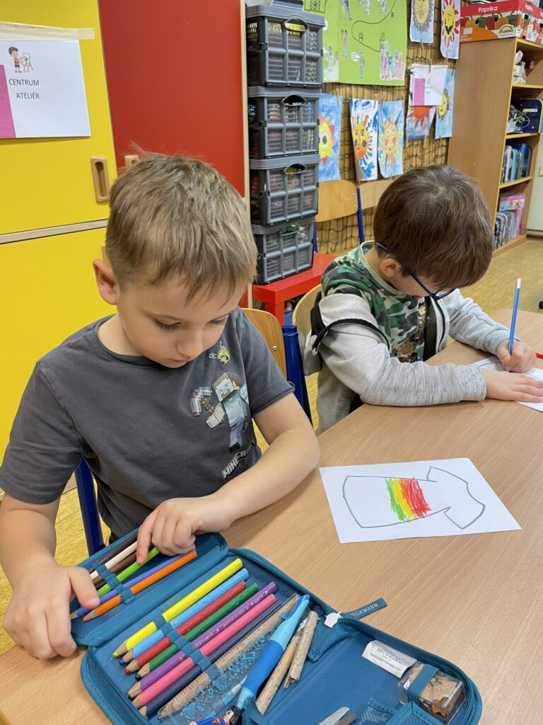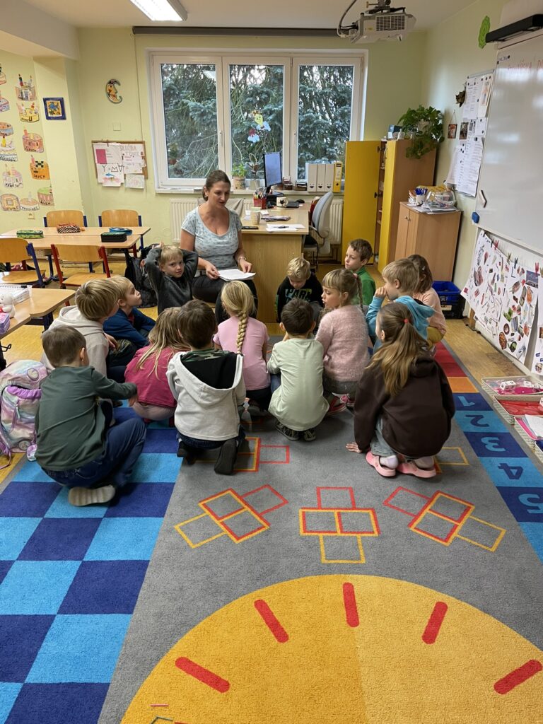 Přinesla knížku O pejskovi a kočičce, ze které nám četla. Čtení O pyšné noční košilce bylo moc pěkné, společně jsme si povídali a závěrem každý nakreslil svoji košilku.