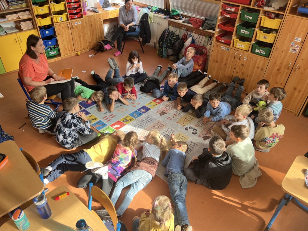 Kouzelnická show se dětem moc líbila a zábava pokračovala i ve 4. hodině. Navštívila nás paní knihovnice, která nám četla hádanky o zvířátkách. Když jsme hádanku uhodli, „začarovala“ nás na chvíli do daného zvířátka – a najednou byla třída plná dikobrazů, plameňáků, kohoutů nebo koček!