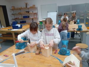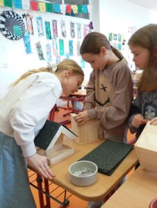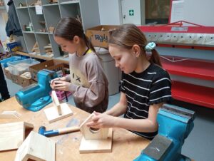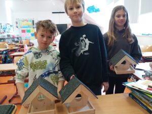Před jarními prázdninami jsme pod vedením lektora z Dřevíčkové dílny vyráběli krmítka pro ptáky.