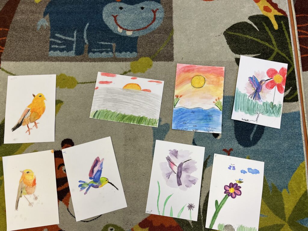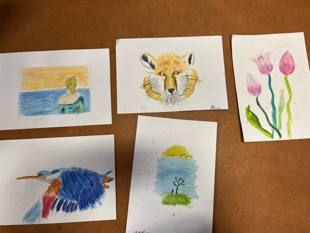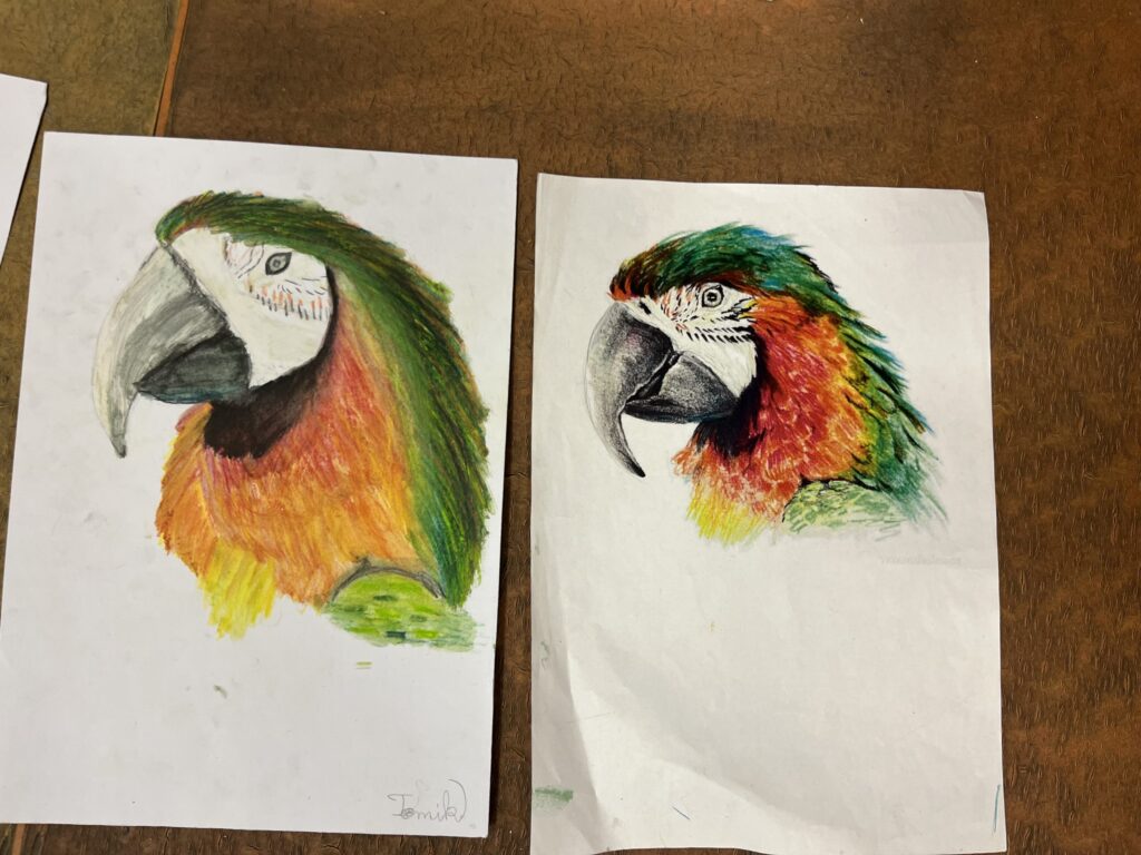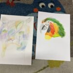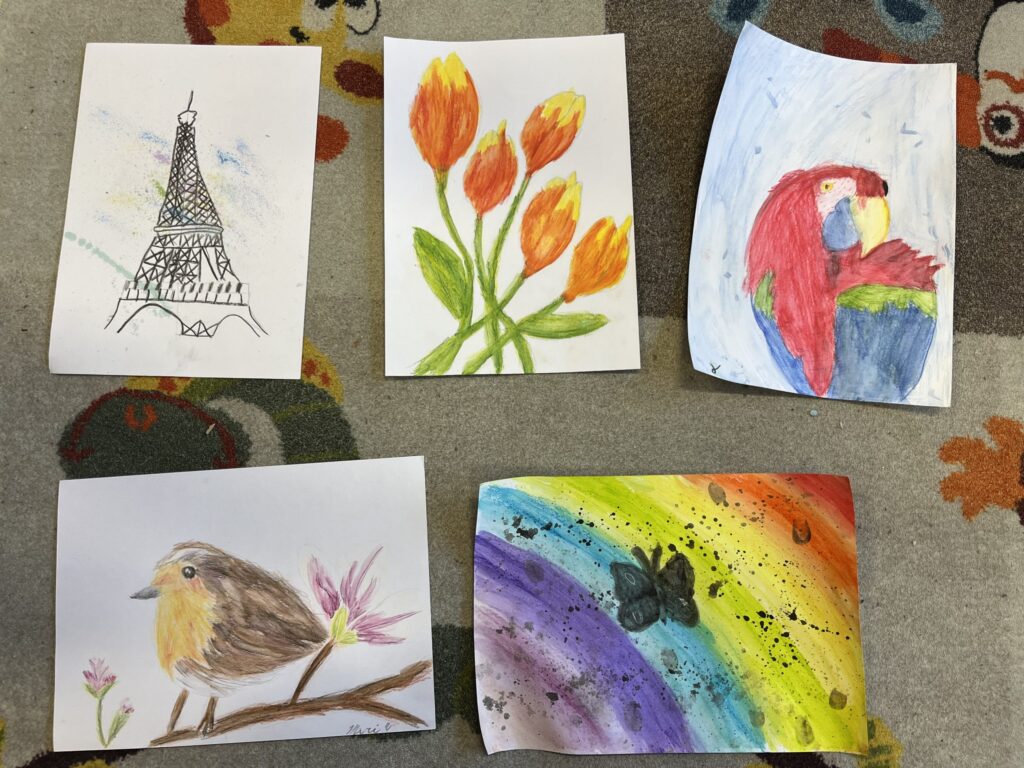 Během ledna a února jsme se v kroužku podrobně věnovali kresbě akvarelovými pastelkami. Děti navazovaly na své předchozí zkušenosti a dále rozvíjely své výtvarné dovednosti. Technika rozmývání jim pomohla posunout se zase o krok dál a lépe porozumět práci s barvou i stínováním. Společně jsme se učili více vnímat detaily a kresby pečlivěji propracovávat. Největší radost dětem přinesla tvorba podle jejich oblíbených námětů – zvířátek.