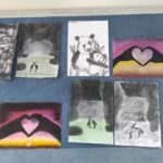 V dubnu jsme se pustili do nové výtvarné techniky. Kresba černým uhlem vypadá velice efektně, proto děti zaujala na první pohled. Děti bavilo, že obrázek je rychleji hotový než u kreslení tužkou. Prohlubovali jsme naše dosavadní znalosti a vyzkoušeli jsme různé předlohy obrázků. Kresby jsme fixovali lakem na vlasy, aby se nám nerozmazaly. Úklid po práci byl trochu náročnější, ale výsledky prací všech dětí stály za to.