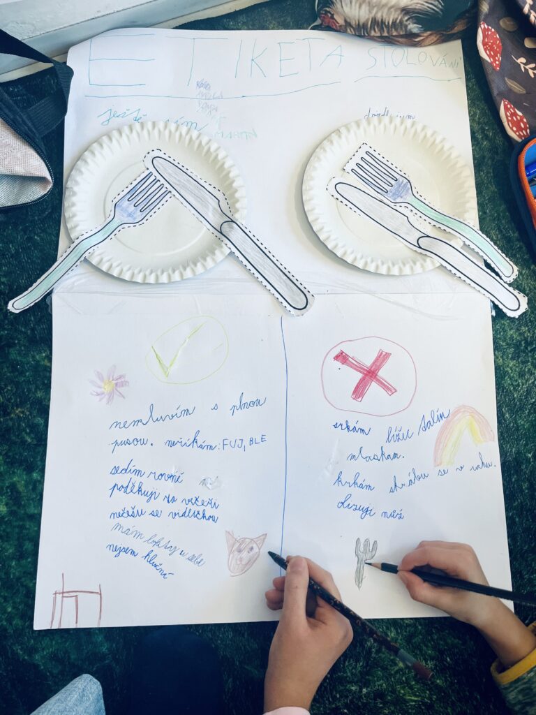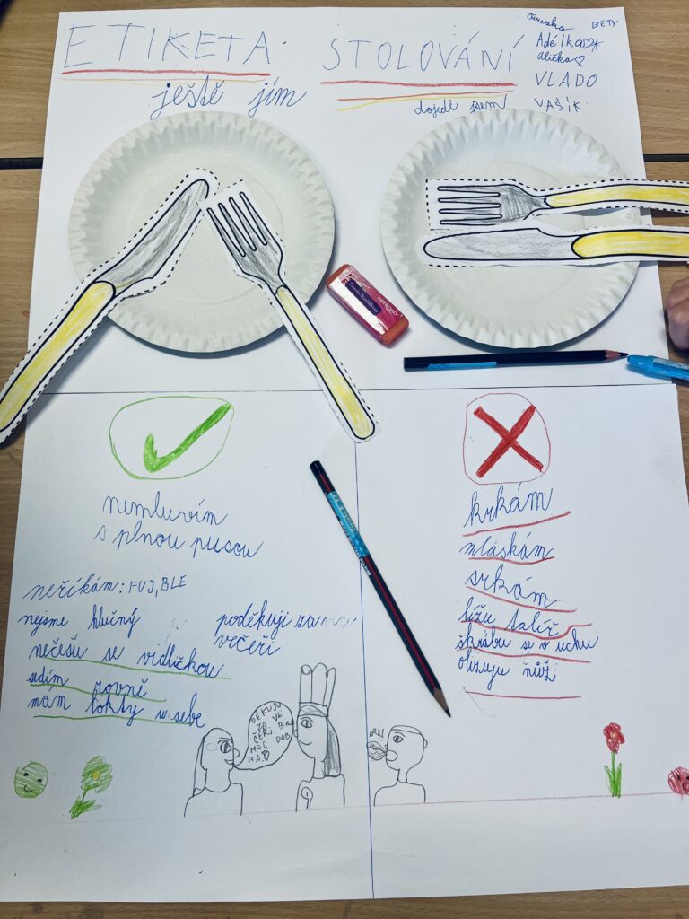 Naše lekce v rámci etické výchovy o stolování byla plná zajímavých poznatků i zábavy. Děti si vyzkoušely, jak správně sedět u stolu, jak používat příbor a proč je důležité být ohleduplný. Společně jsme si uvědomili, že etiketa není o dokonalosti, ale o snaze být slušný a respektovat ostatní.