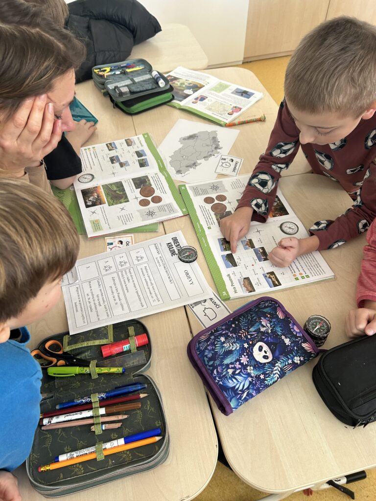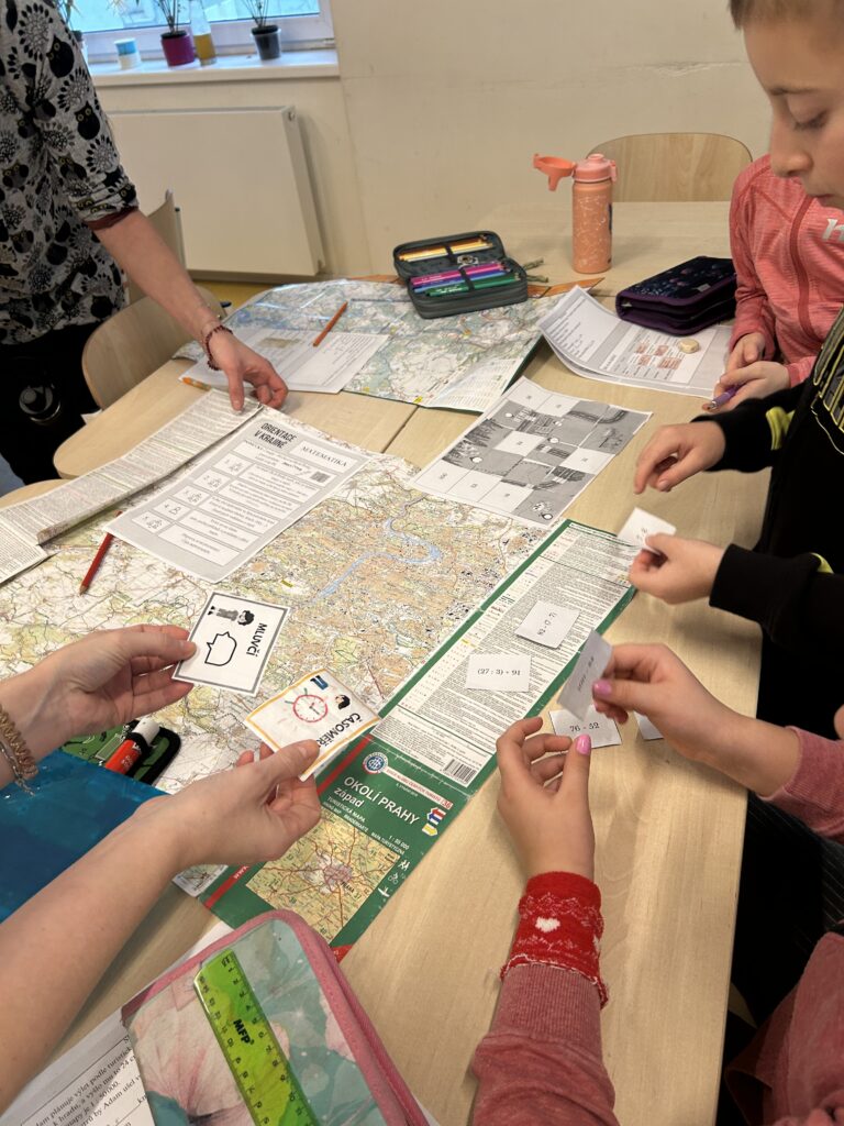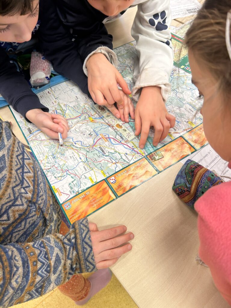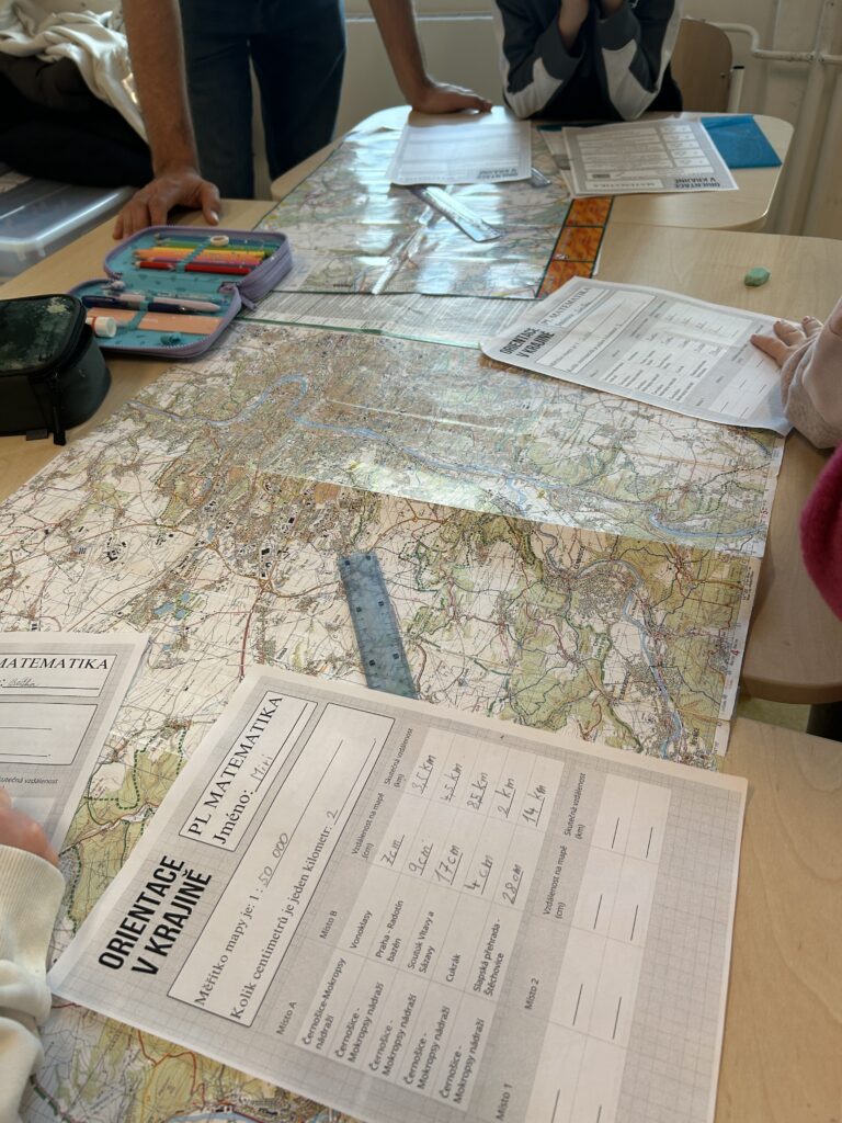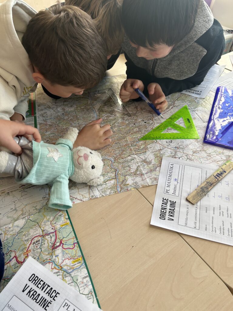 V lednu jsme se věnovali centru aktivit na téma Orientace v krajině. Děti zkoumaly měřítko mapy, učily se podle něj měřit vzdálenostia pracovaly s různými typy map. Součástí práce bylo také psaní zajímavostí o našem městě Černošice.