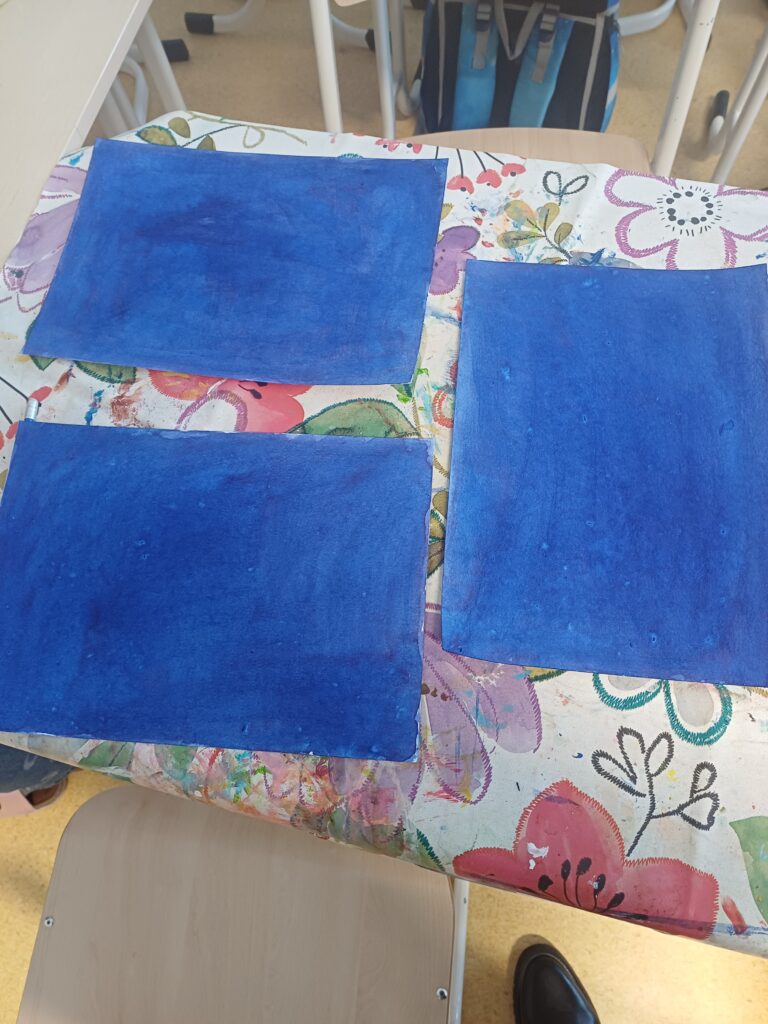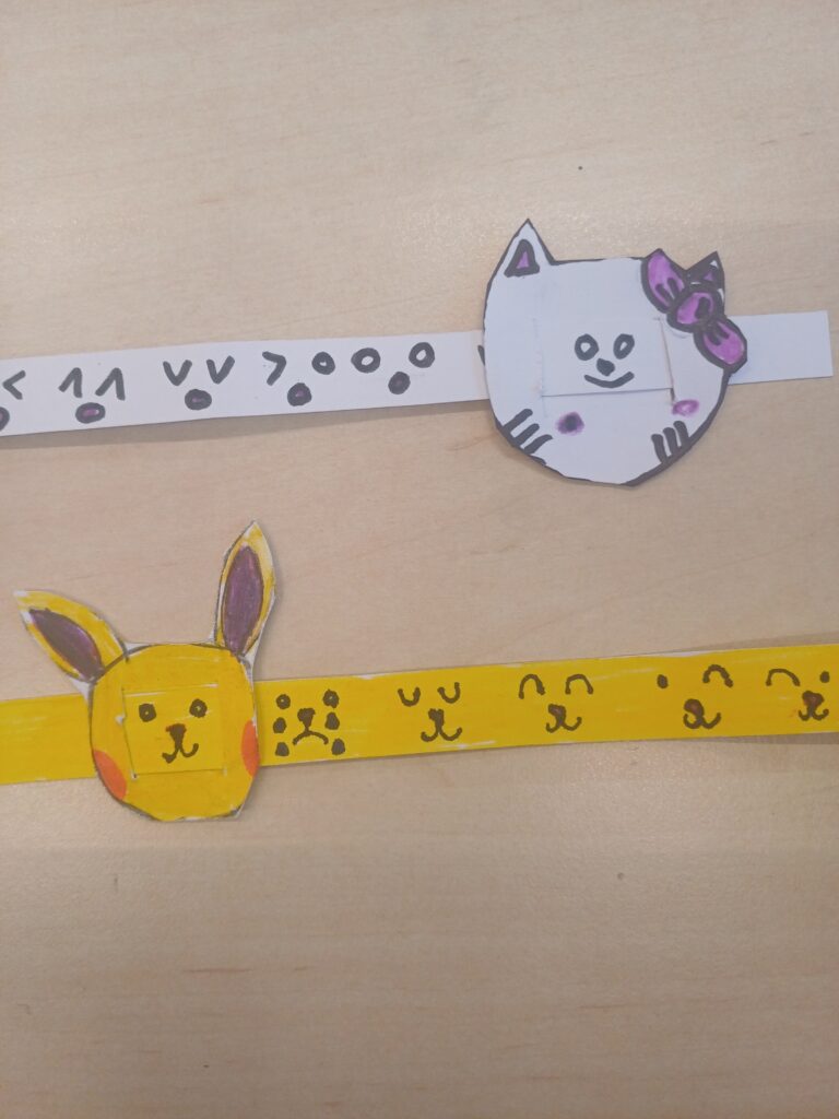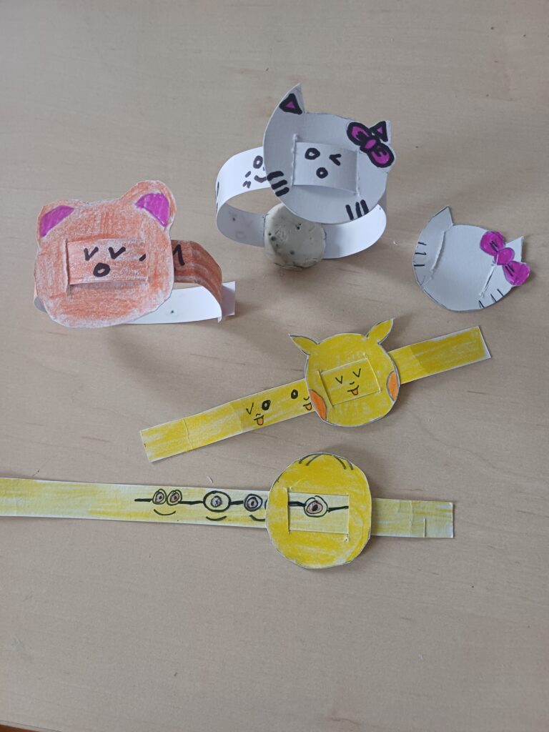 Společně jsme vyráběli papírové náramky. Velký úspěch měla také výtvarná technika s inkoustem a zmizíkem.