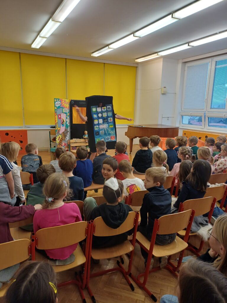Na konci ledna nás navštívilo divadýlko Nosálci s představením Digitime. Téma bylo o škodlivosti nadměrného užívání mobilních telefonů. Dětem toto téma bylo představeno zábavnou, vtipnou a srozumitelnou formou. Představení bylo krásné – hodně jsme se smáli, zpívali a společně si užili příjemné odpoledne.