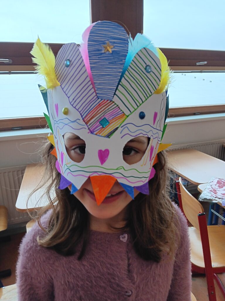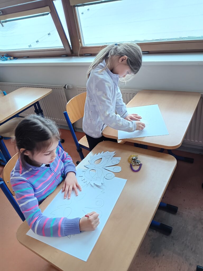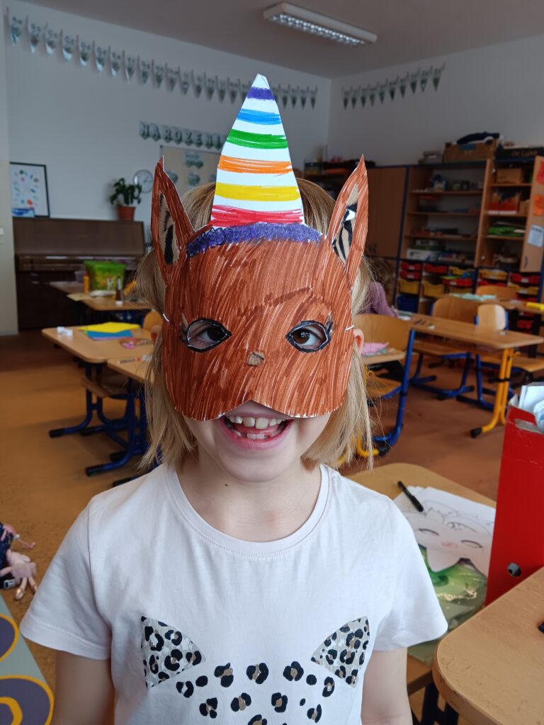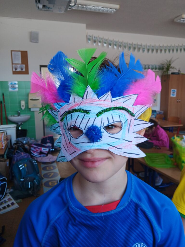 V sobotu 14. února se v Černošicích uskutečnil Mokropeský masopust. I my jsme se na něj pečlivě připravili. Děti si na čtvrtku obkreslily masku podle šablonky, která se jim líbila nejvíce. Někdo si sám vyrobil podle vlastní fantazie. Masky jsme vymalovali a dozdobili barevnými peříčky, třpytkami, ozdobnými kamínky a jinými ozdůbkami. Masky byly originální.