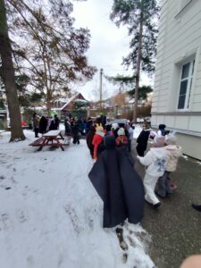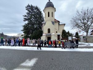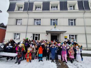 Komenda zažila veselý a barevný den plný smíchu, masek a hudby. Společně jsme se stejně jako minulý rok zapojili do tradičního masopustního průvodu a celá škola se proměnila v rej nejrůznějších maškar. Děti i učitelé si připravili nápadité masky – nechyběly tradiční masky jako medvěd, šašek, nevěsta a ženich, smrtka… a nechyběla ani další zvířátka, pohádkové postavy, superhrdinové, pokémoni a další originální převleky. Za doprovodu hudby jsme vyrazili do ulic v okolí školy a došli jsme až před radnici. Zpívali jsme, hráli na hudební nástroje a s radostí jsme mávali na kolemjdoucí. Cestou se zastavilo několik lidí a bylo vidět, že jim náš průvod vykouzlil úsměv na tváři.