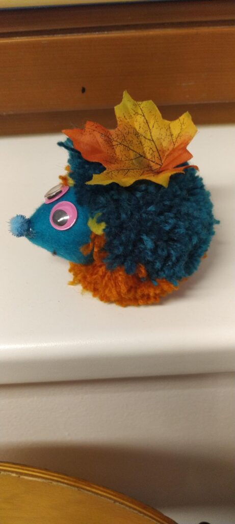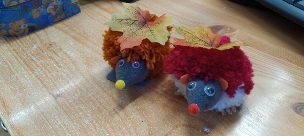 Ani ve třídě se medvídci nenudí. Máme tam spoustu hraček a her. Také hodně vyrábíme. Třeba ježky bambuláky, střapatá zvířátka a barevné podzimní pavučinky.