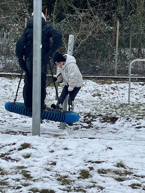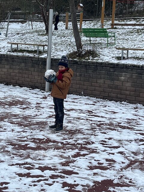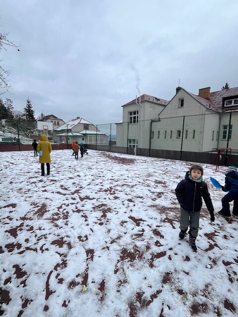 Když sníh roztál ,mohli jsme vzít míč a hrát si na hřišti.