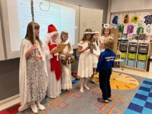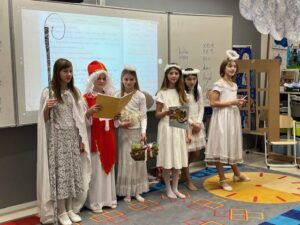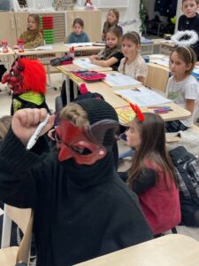 5.12. již tradičně proběhla na Komendě akce, kdy se děti převlékají za anděly a čerty. Páťáci se skvěle zhostili rolí Mikuláše a jeho družiny a poctili naší třídu svou návštěvou. Hříchy byly odpuštěny a všichni se dočkaly sladké a zdravé odměny. 🙂