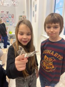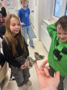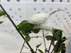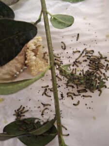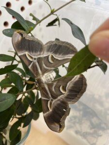 Jak to všechno začalo? V říjnu nám Johanka přinesla vajíčka a pár malých píďalek motýla, který se jmenuje Martináč pajasový. Zabydleli se u nás ve třídě v průhledné plastové krabici, abychom je mohli dobře pozorovat. Společně jsme je krmili, čistili jim „domeček“ a zvlhčovali jim celý byt. Krásně jsme se o ně starali a malé píďalky postupně rostly a rostly, až se z nich staly velké housenky, které toho spořádaly už opravdu hodně. Jeden den jsme do krabice dali plnou náruč větví, které byly obalené zelenými šťavnatými listy a druhý den, když jsme přišli do školy, větve byly úplně oholené a housenky zase o kus větší. V zimě je trochu problém, že nejsou zelené listy Šeříku, které housenkám moc chutnají, ale pouze listy keře, který se jmenuje Ptačí zob. Naštěstí jsme spojili síly a kdo mohl, donesl větvičky, aby nám housenky nehladověly. Konečně nastal den D a housenky se nám začaly zakuklovat. Během týdne se všechny zakuklily, vytvořili kolem sebe měkoučký kokon a uvnitř v kukle, která byla pevná a hnědá se začaly dít neskutečné věci – METAMORFÓZA. Tělo housenky se rozpustí na tekutinu a buňky dostanou pokyn vystavět úplně nové tělo a to tělo motýla. Jedna z housenek si dala na čas a tak jsme ji pojmenovali Čekalka. 🙂 Nakonec se zakuklila i ona, ale mezitím, co u ní v kukle probíhala metamorfóza, ostatní se už vylíhli. Měli jsme štěstí a vyklubali se nám jak motýlice, tak motýli a tak máme motýlí vajíčka, ze kterých se znovu vylíhly malé píďalky… a tak koloběh života stále pokračuje. 🙂