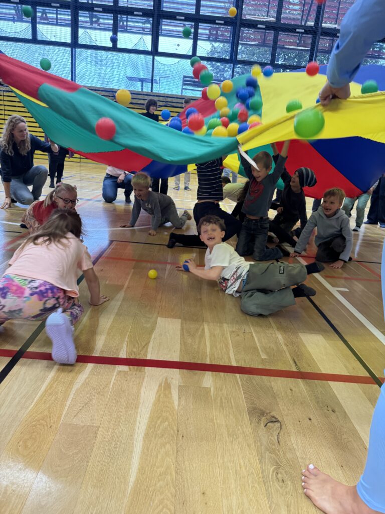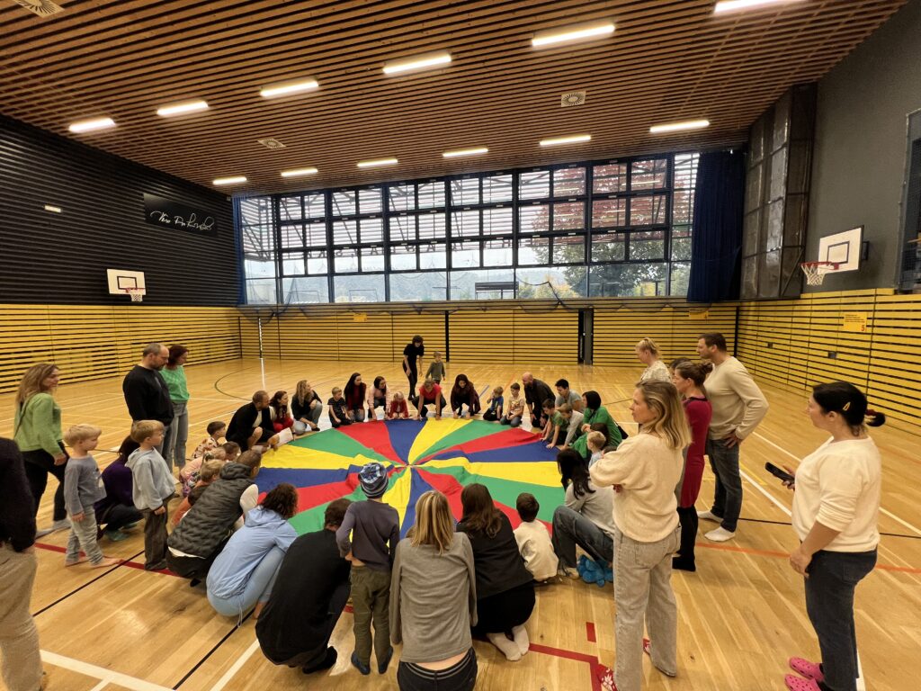 Následovalo hraní s barevným padákem a míčky, při kterém se zapojili všichni. Poté jsme si ještě chvíli povídali a užili si společné chvíle u snídaně.