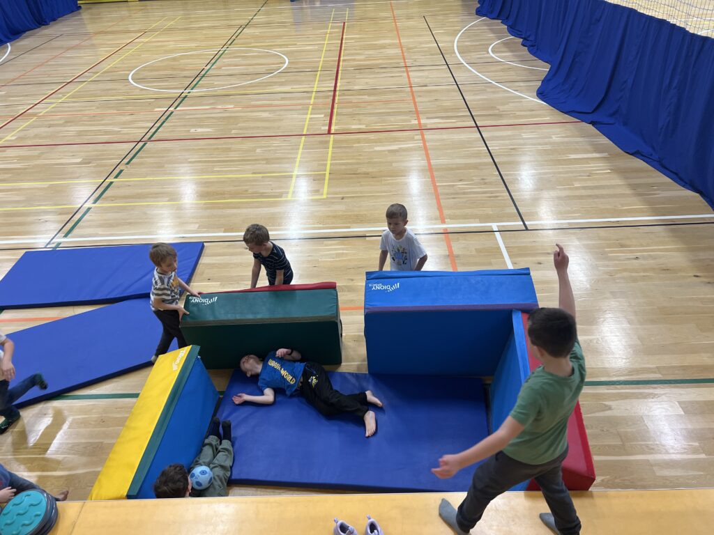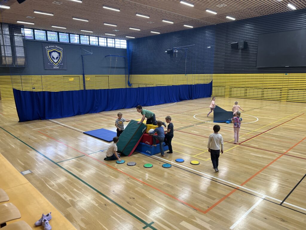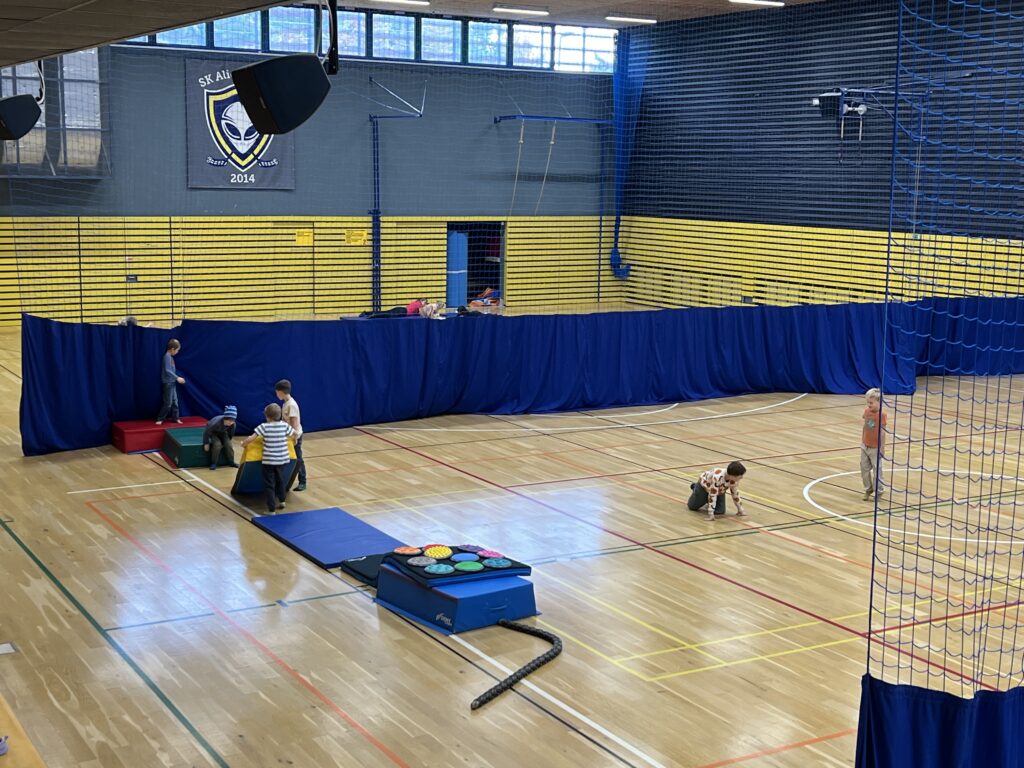 Po rozloučení s rodiči si děti dopřály chvilku volné zábavy – opičí dráhu, hry s míčem nebo kreslení.