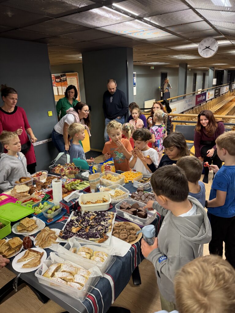 Po ní následovala bohatá společná snídaně, ke které přispěl každý žák nebo rodič. Na stolech se sešly samé dobrůtky a všichni si pochutnali. Nám dospělým tam chybělo kafe, to budeme muset příště vylepšit.