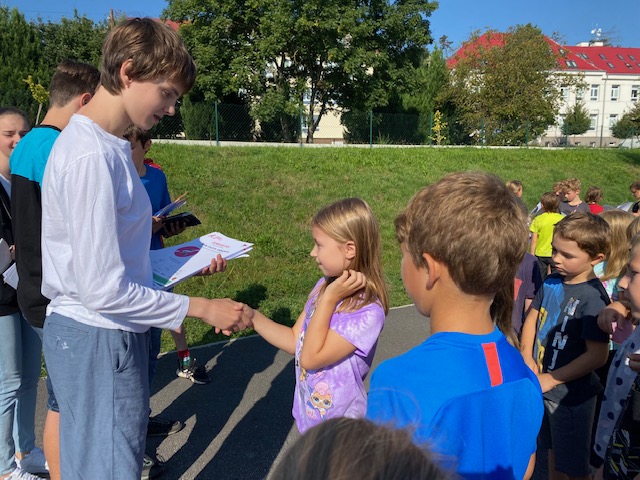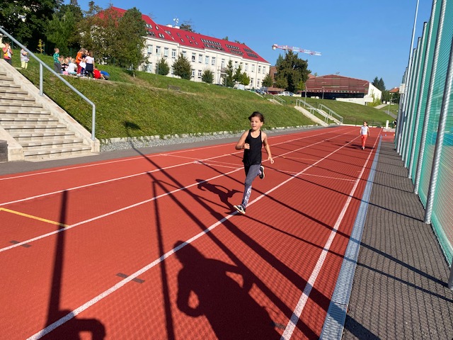 Hned ráno jsme se vydali pěšky z naší školy Komenského přímo na krásné sportoviště, které se nachází před školou v Mokropsech. Když jsme dorazili na místo, děti se pomocí trenérů rozcvičily, vyslechly si pravidla a vyrazily běžet 500m. Všichni si to moc užily a nechyběly ani medaile a něco na zub:-). Atmosféra byla fantastická a počasí nám opravdu přálo