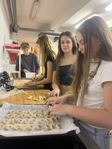 Ve středu 3. 12. jsme se třídou 6. A strávili příjemné dvě hodiny ve školní kuchyňce. Žáci měli za úkol připravit si ve skupinkách recept na cukroví, případně si doma nachystat těsto. Během pečení jsme si pouštěli vánoční písničky a když byly plechy v troubě, dokonce jsme si i zatancovali. Cukroví se vydařilo – bylo výborné.