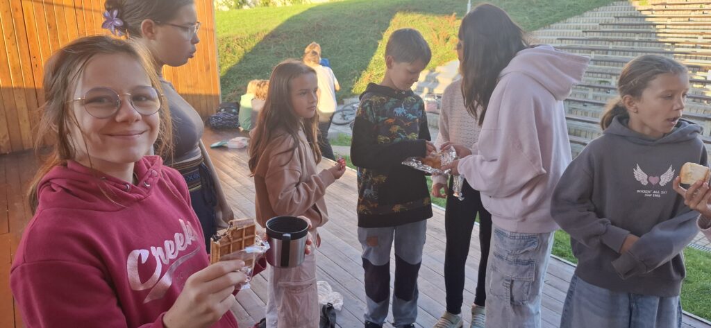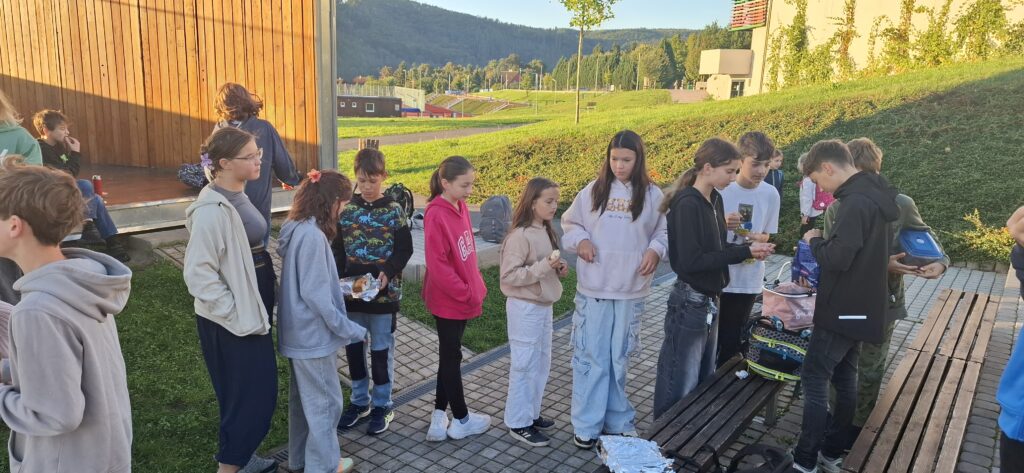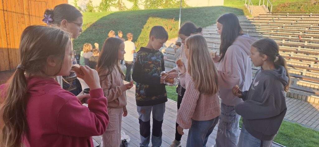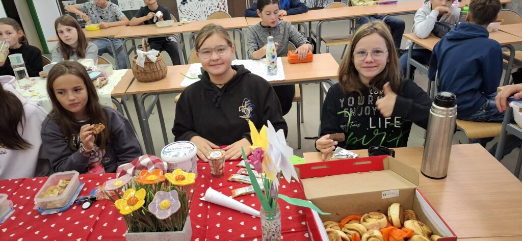 Uzavíráme náš pěško-chodící týden společnou snídaní ve školním amfiteátru. Opět děkujeme všem maminkám, které připravily dobroty ke vzájemnému sdílení. Jako třídní učitelka oceňuji všechny žáky, kteří celý týden poctivě chodili pěšky či jezdili na koloběžkách. Byli skvělí, drželi v týmu basu a nasbírali jsme 97,14 bodu, to je hodně! Nechme se překvapit, jak se umístíme. Též velmi chválím žáky, kteří si dali záležet na svých kostýmech či rekvizitách. Někteří byli skutečně kreativní, vtipní a hodně šikovní. Každý den jsme společně snídali a žáci se shodli, že si rána příjemně užili. Zažili jsme cestu do školu a školu před jejím otevřením zase trochu jinak a bylo to moc fajn zpestření.