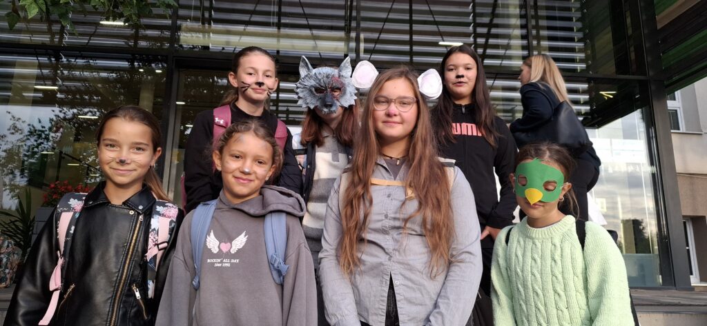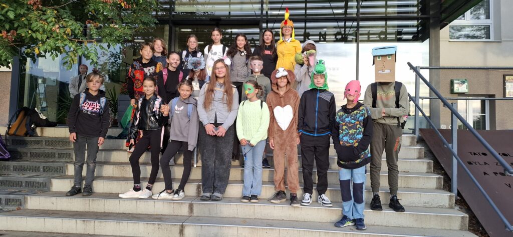 V úterý se opět všechny čety sešly v 7:20 u školy. Tématem dnešního rána bylo „zvířátko.“ Ke škole tak dorazila krásná myška, krokodýl, pejsek, kočičky, liška, papoušek, křeček a dokonce lama. Některé masky si žáci dokonce sami vyrobili. Někteří žáci měli různá zvířátka na tričkách či mikinách. A kdo nad třídou drží křídla? No přece kvočna – paní učitelka. 🙂