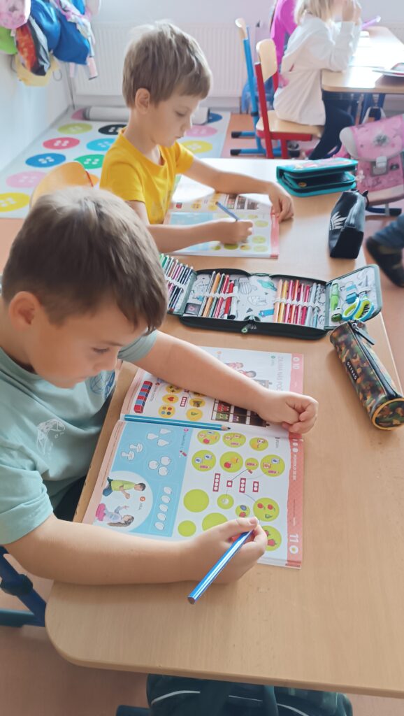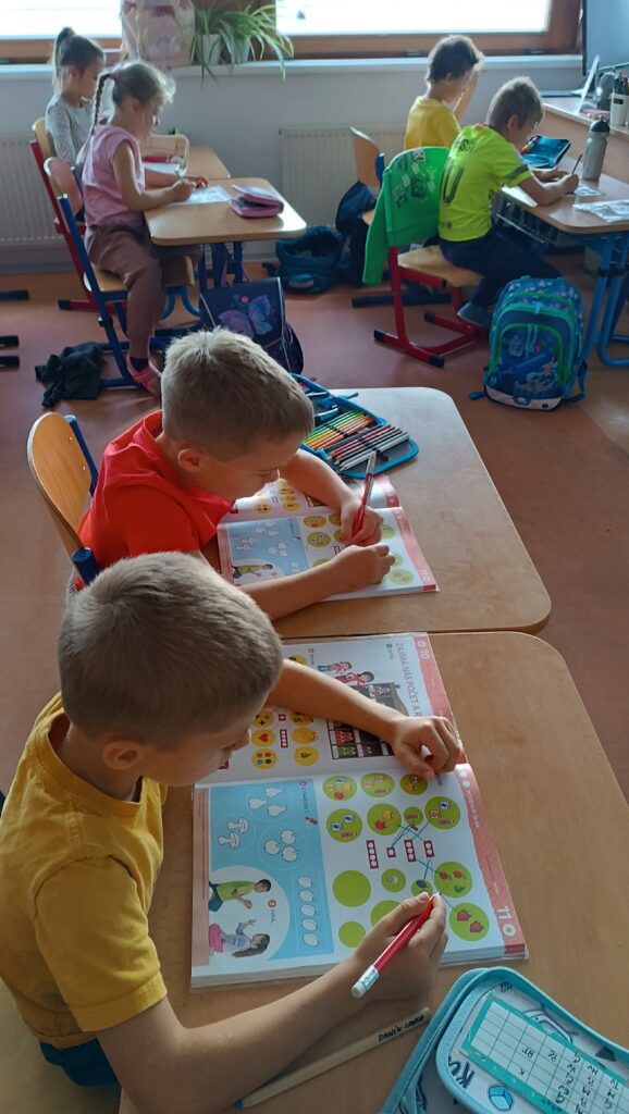 PO – PÁ (čísla stránek a cvičení najdete v Bakalářích) · předčtenářské období zraková a sluchová diferenciace zraková a sluchová paměť sluchová pozornost · uvolňovací cviky · orientace na ploše (vlevo, vpravo, nahoře, dole) · Živá abeceda – Barevný týden, barevné vyučování |