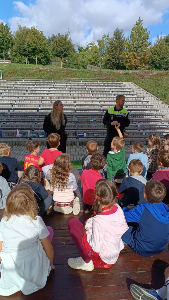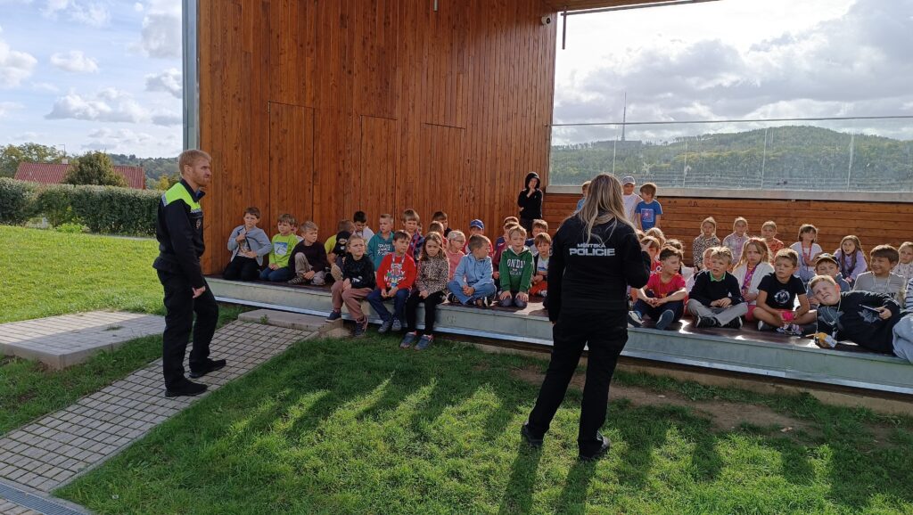 Co dělají žáci ve škole a ve třídě · PS str. 8-9 · Beseda se strážníky |